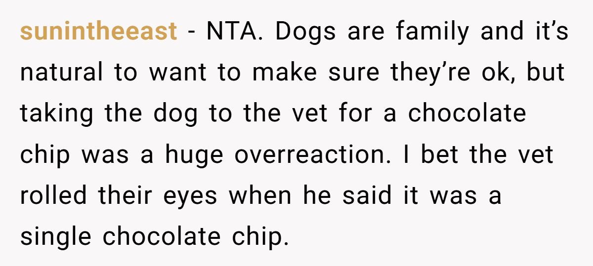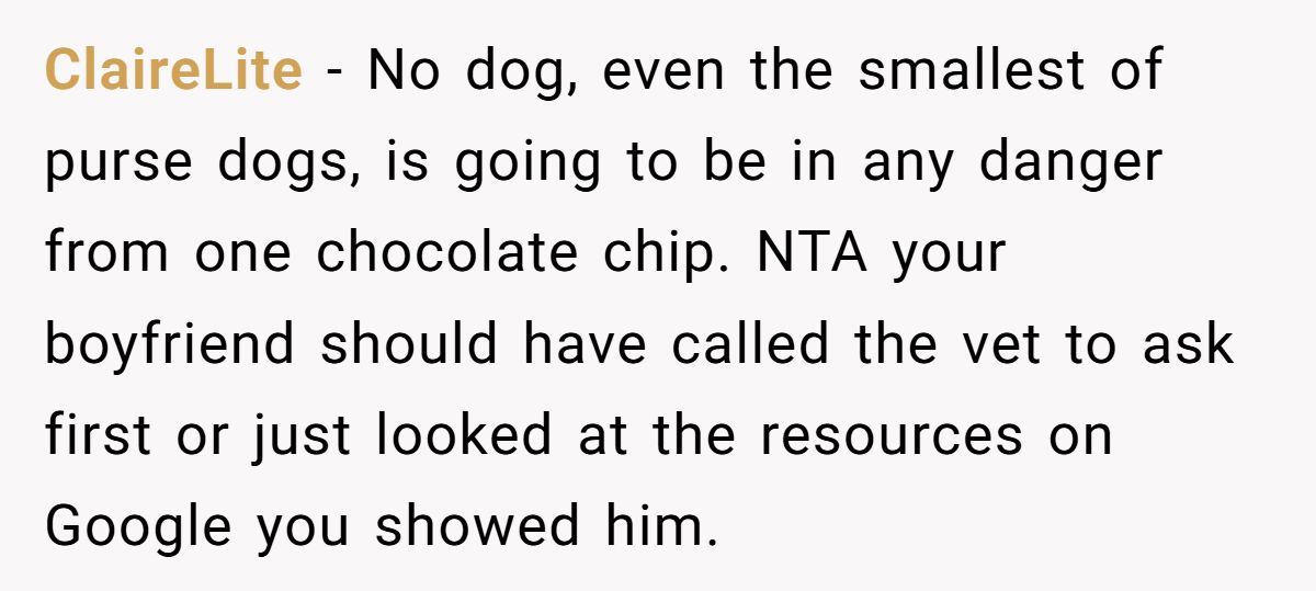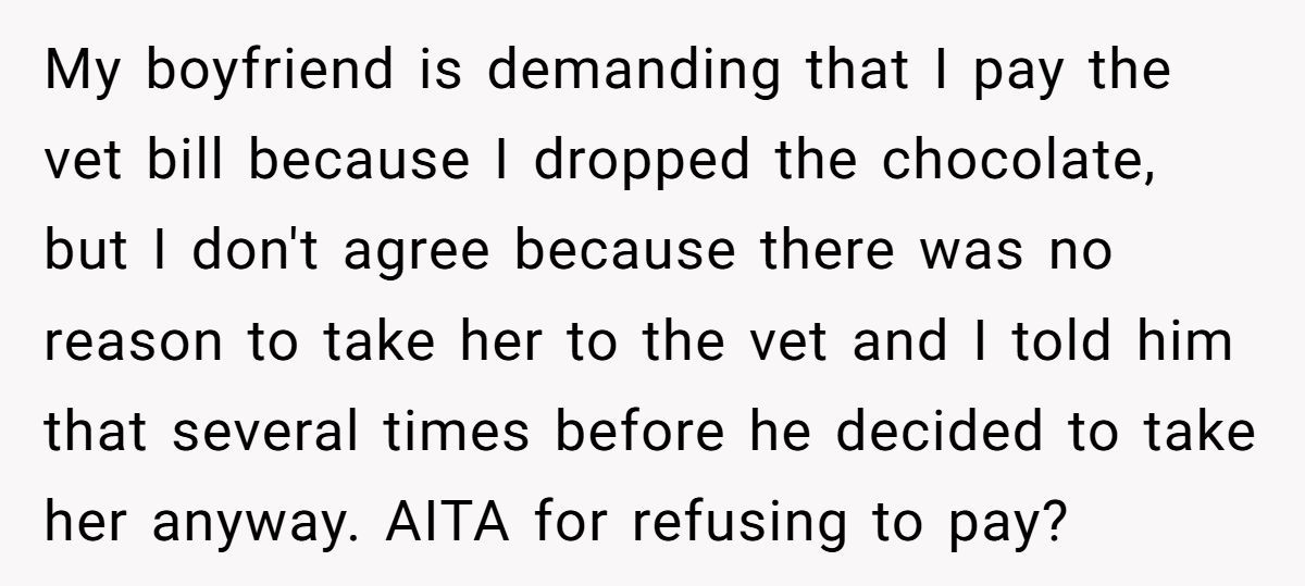 One woman shared a story of conflict with her boyfriend after his dog ate a single chocolate chip, leading to an unnecessary emergency vet visit and a bill he insists she pay