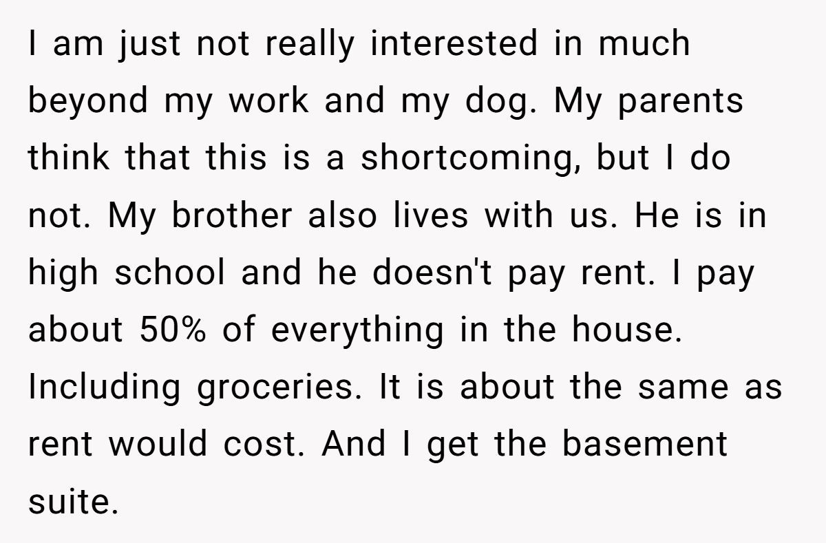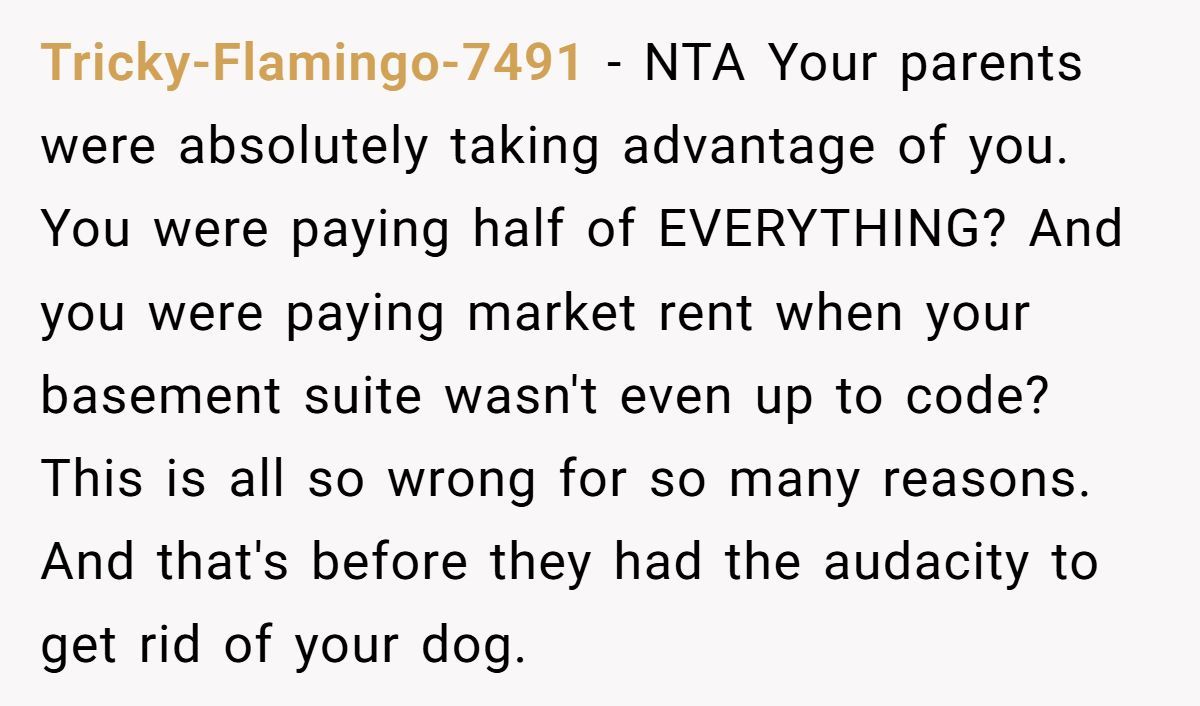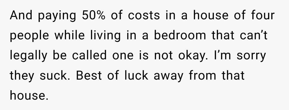 This betrayal also uncovered financial exploitation. Paying half the bills in a four-person household, the Redditor essentially subsidized her family while being treated like a dependent. Her “unrentable” basement room added insult to injury. Instead of valuing her, her family dismissed her emotional needs and jeopardized her trust.