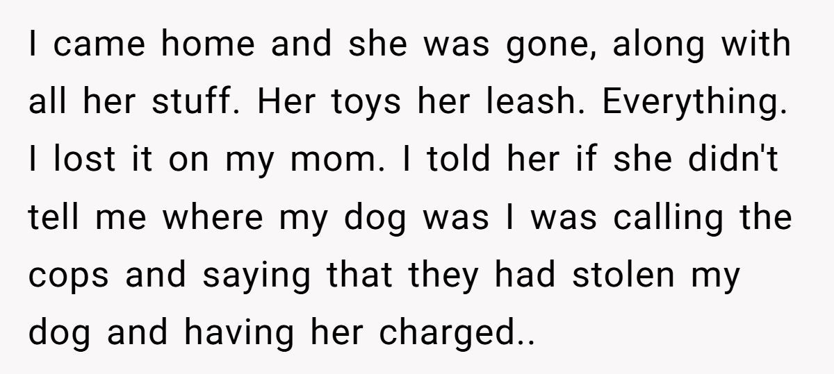The larger issue isn’t whether pets should rival people. It’s about consent, respect, and agency. Whether you think the dog was “just an animal” or a stand-in for family, this young woman didn’t lash out over nothing. She acted after trust was shredded. Her parents gambled with her emotional lifeline, and now they’re dealing with the fallout.
