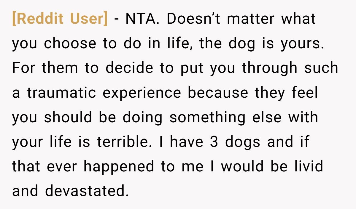 Commenters, especially pet owners, empathized with her bond with her dog, calling the parents’ actions traumatic and unjustifiable