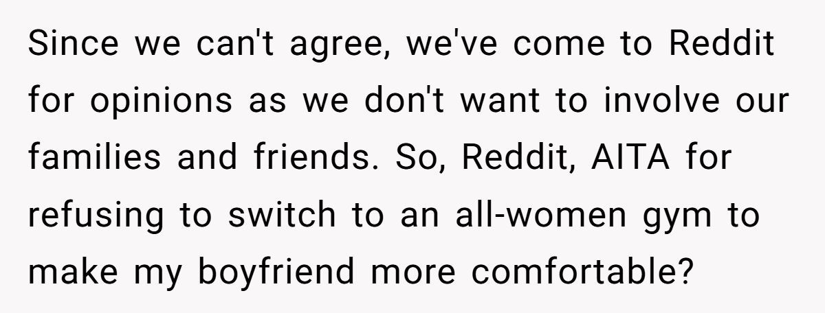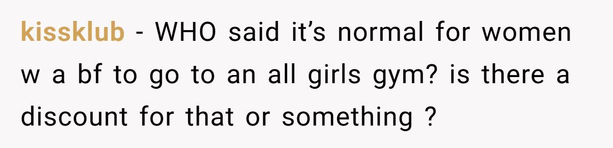 Many Reddit users questioned the boyfriend’s claim about gym norms, mocking its lack of basis in reality