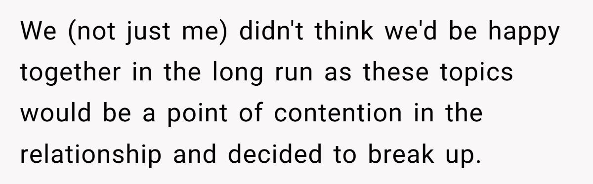 Relationship coach Matthew Fray once put it plainly in his viral essay: “The moment we try to control someone out of fear of losing them, we’ve already lost the relationship.” In this case, both partners recognized that early—and made the healthy decision to part ways.