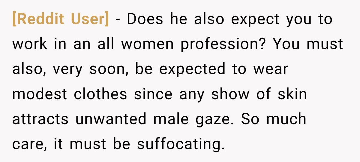 At first glance, the boyfriend’s request might sound sweet or protective: encouraging his partner to avoid unwanted attention. But as many Redditors quickly pointed out, that’s not affection—it’s projection. And according to Dr. Andrea Bonior, clinical psychologist and author of Detox Your Thoughts, “Jealousy becomes problematic when it dictates another person’s choices or freedom.”