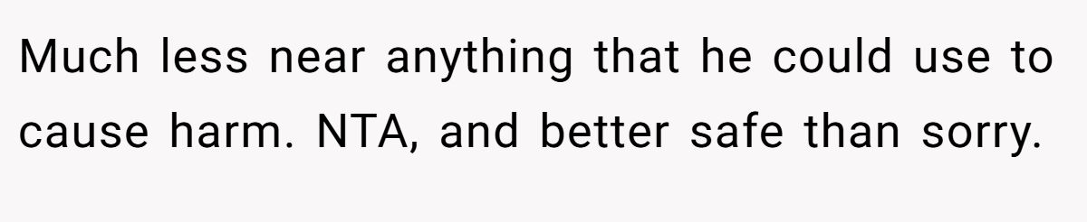 Much less near anything that he could use to cause harm. NTA, and better safe than sorry.