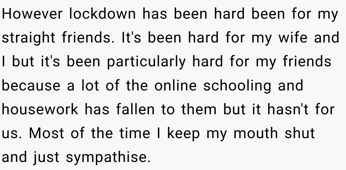 She and her wife, both in their mid-thirties and raising two young kids, had managed lockdown with teamwork and humor. But instead of admiration, she got side-eyed comments about her bedroom habits and questioned loyalty to men. What started as a familiar round of venting about husbands turned into a bold declaration—and not everyone was ready for her truth.
