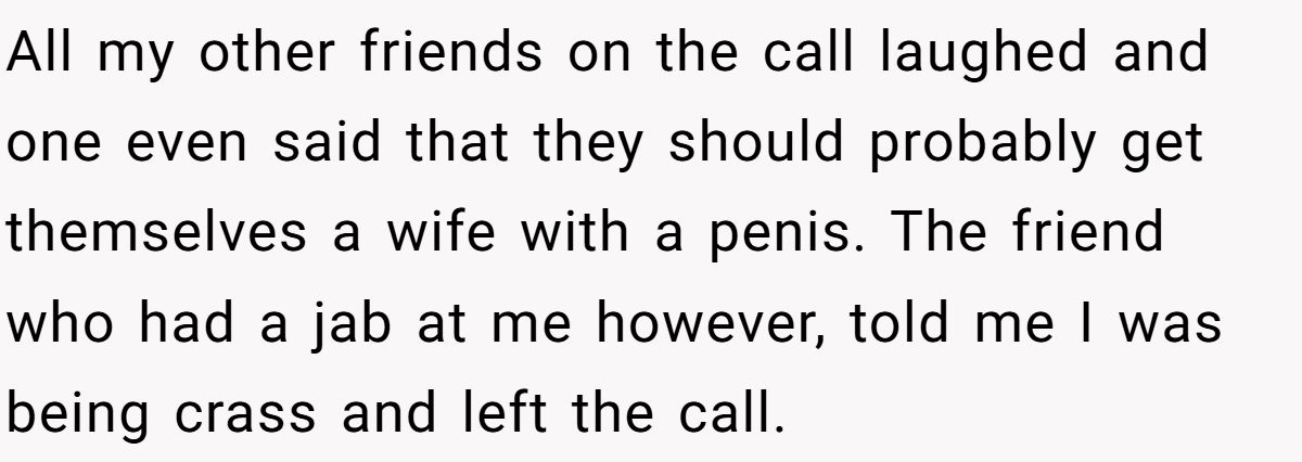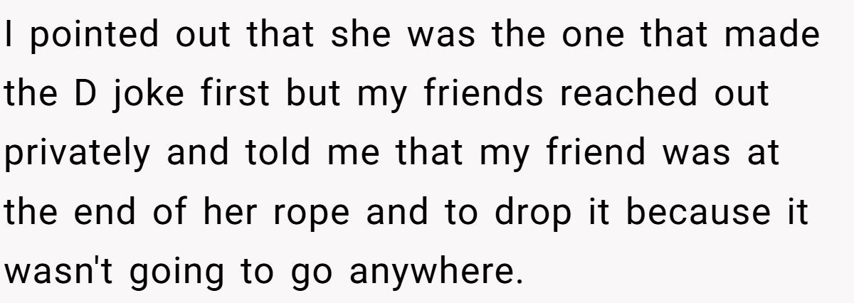 Friendships often survive on teasing—but there’s a line between playful banter and identity-based jabs. In this Redditor’s case, the recurring “missing the D” jokes weren’t harmless—they hinted at biphobic undertones that quietly erode trust.