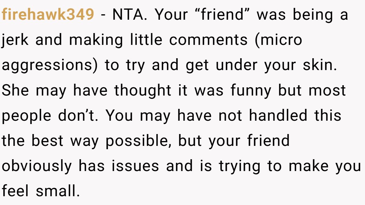 Would you have let the joke slide—or clapped back even harder? What’s your take on joking boundaries among friends? Share your take in the comments below!