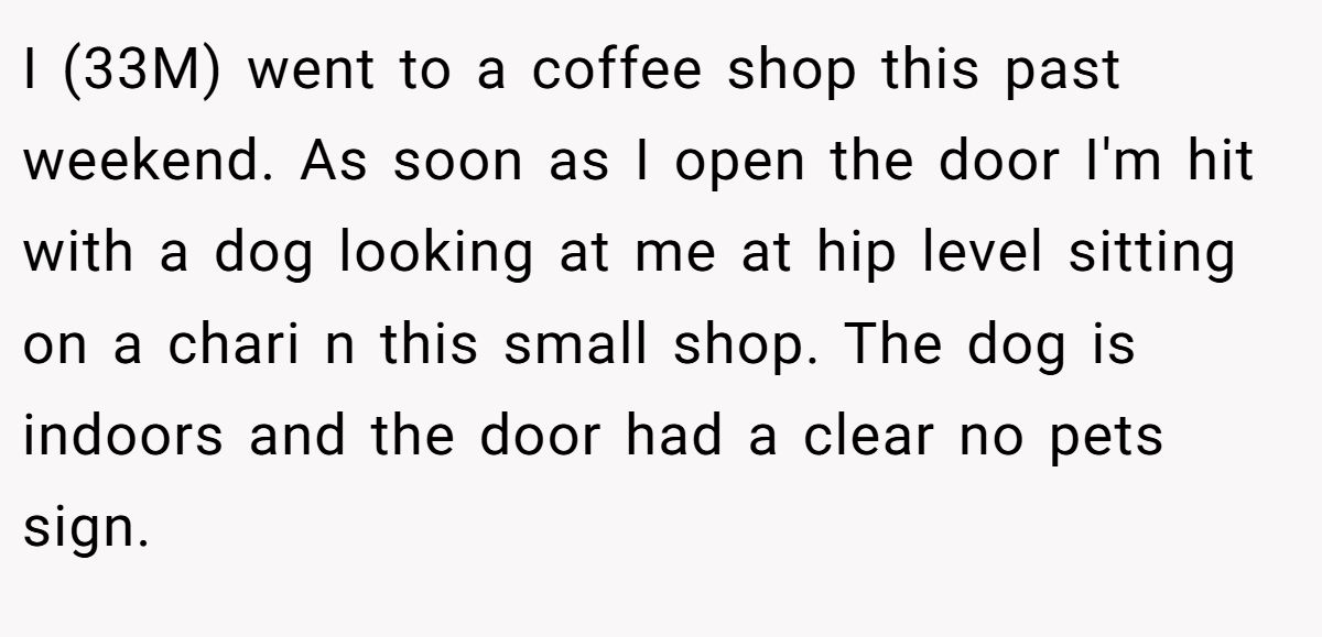 This Redditor’s confrontation over a dog in a no-pets coffee shop turned a quick caffeine fix into a rule-breaking ruckus. His stand for the sign clashed with an entitled owner’s defiance, but was his approach too pushy, or was her victim act out of line? Should he have gone straight to the manager, or was calling her out fair game? How would you handle a furry rule-breaker in your café? Toss your thoughts into the espresso drama cup below!