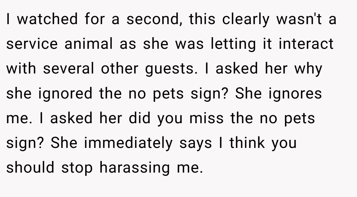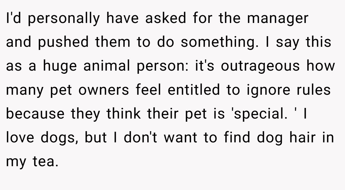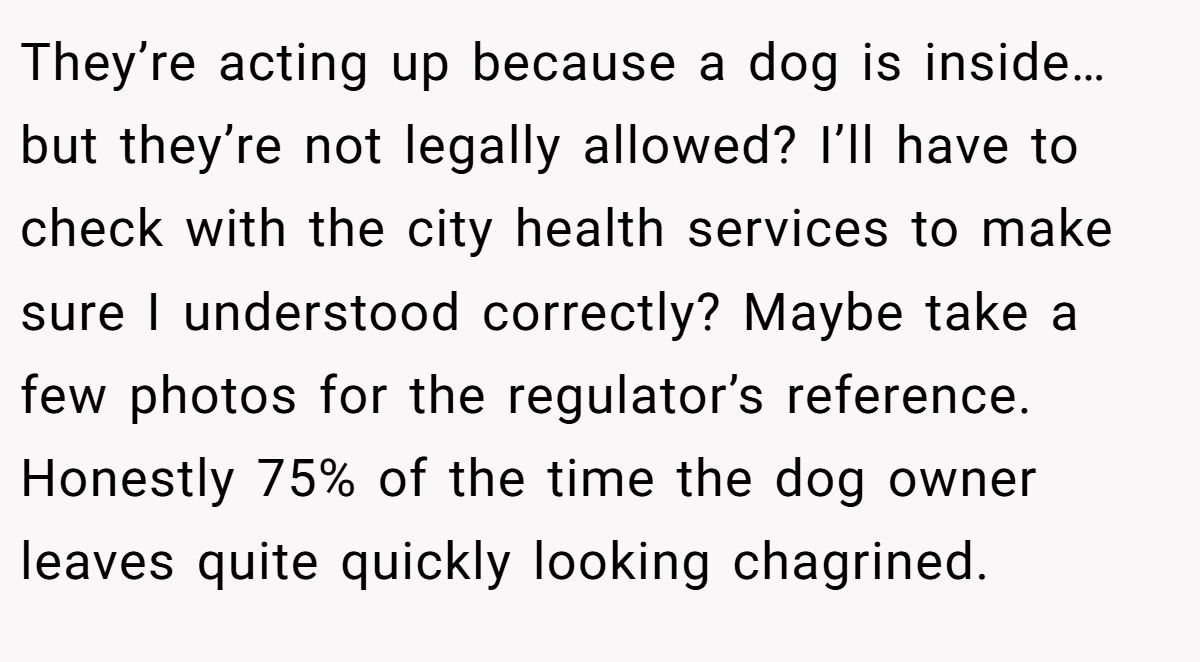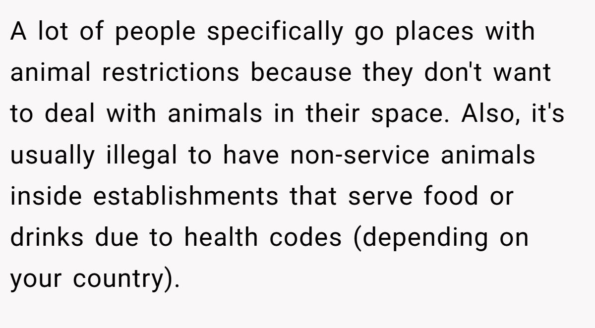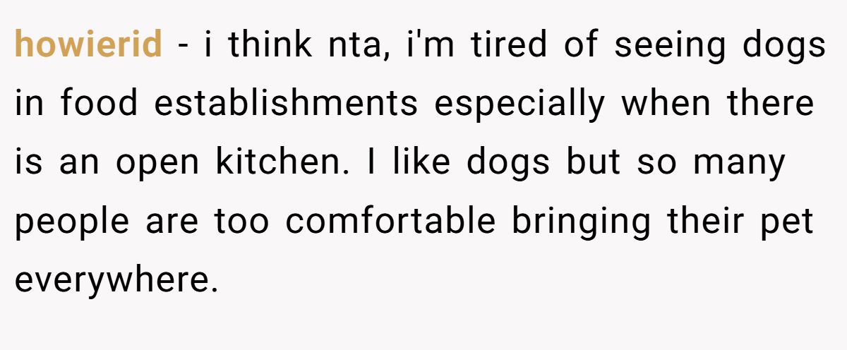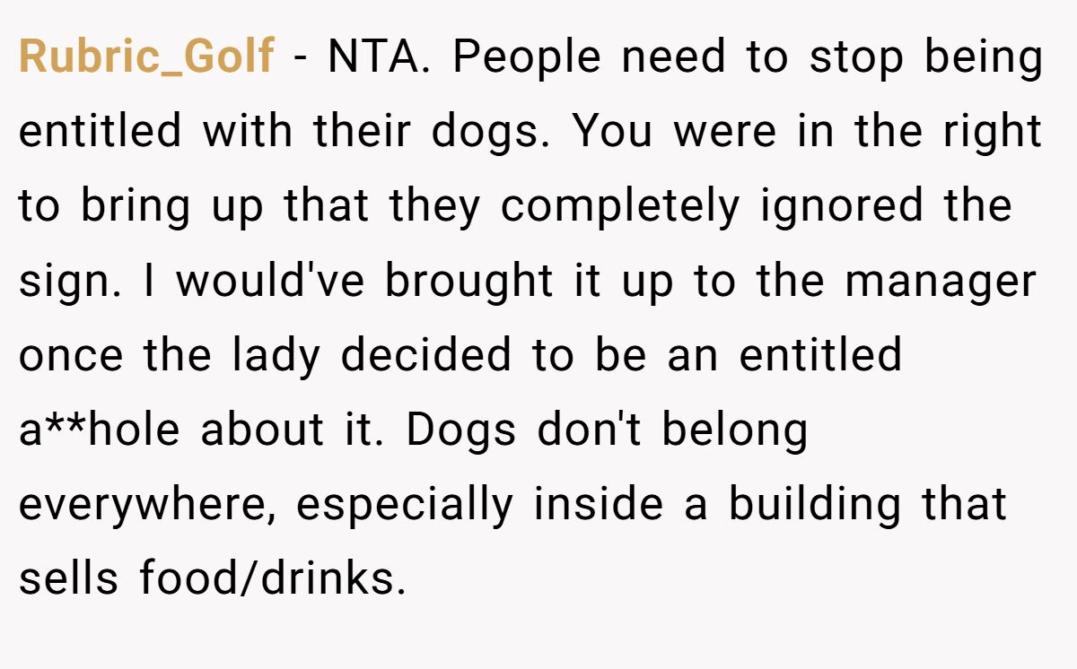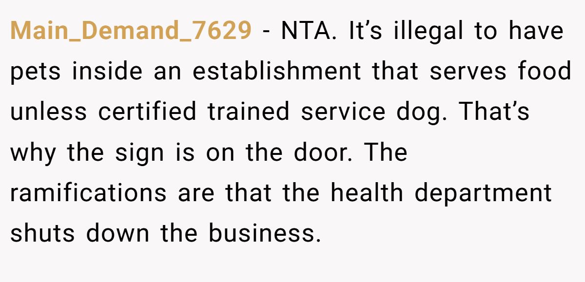 What this Redditor experienced isn’t just about preferences—it’s about public boundaries and respect for shared spaces. He wasn’t barking without reason. According to U.S. health regulations like the FDA Food Code, only service animals are legally permitted inside food establishments due to hygiene and allergen concerns.