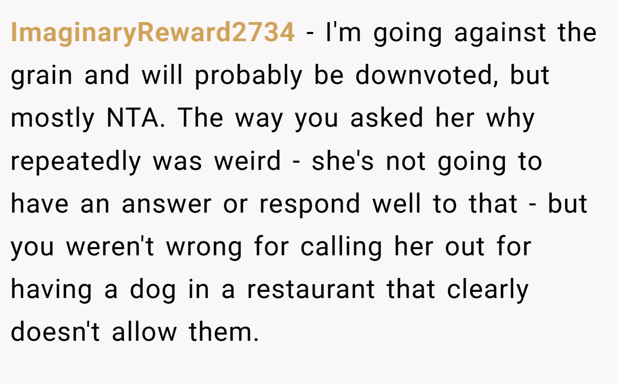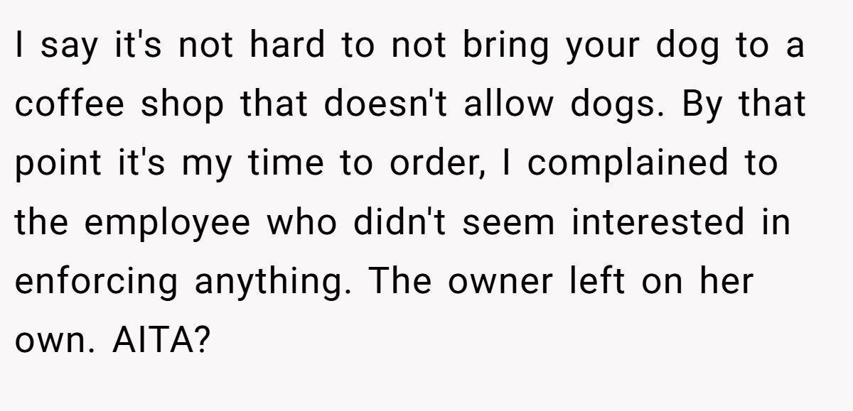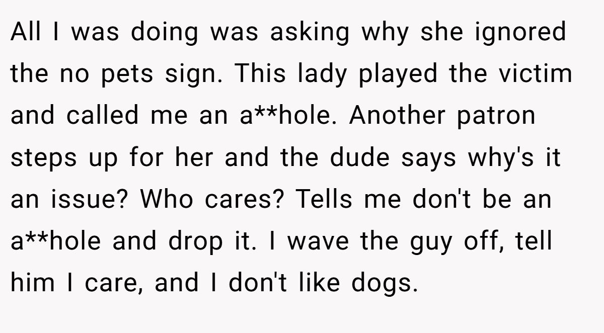 In this story, the man didn’t kick the dog out. He asked a fair question in a public space where rules were being ignored. The backlash he received? That’s more about social posturing than moral high ground.