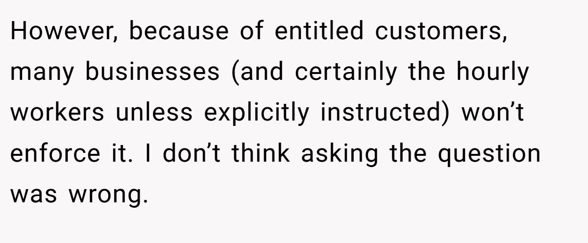 Yes, he could’ve asked the staff to enforce the rules instead of engaging directly—but then again, when public norms go unchecked, shouldn’t someone speak up? We teach kids to follow signs. Grown adults should too.