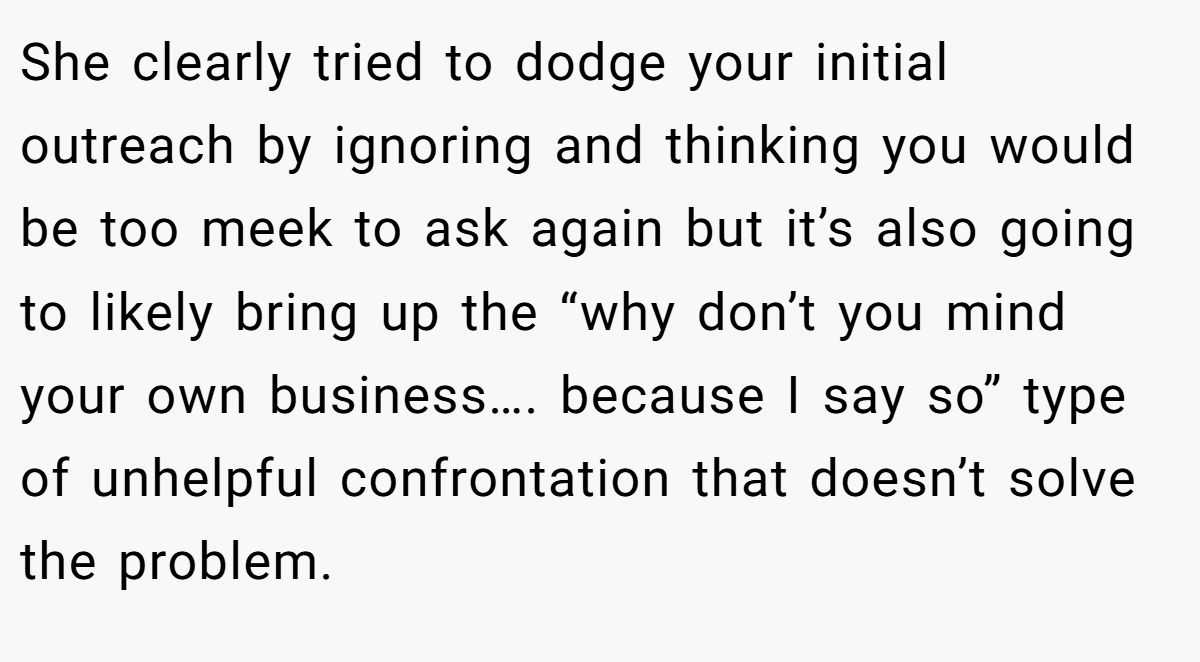 Psychological-Work85 offered straightforward support for the Redditor’s stand.