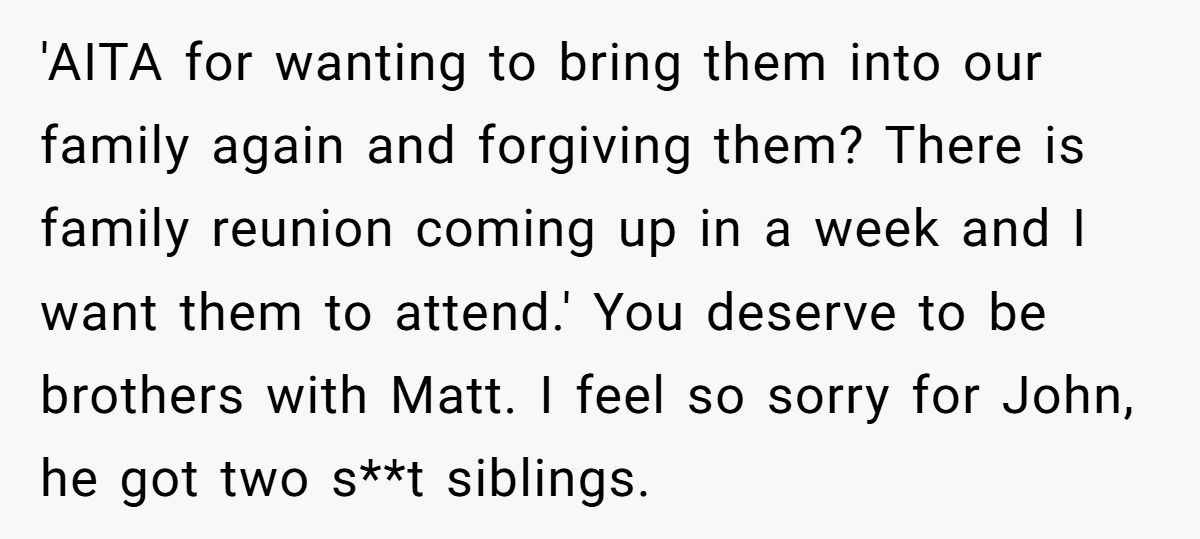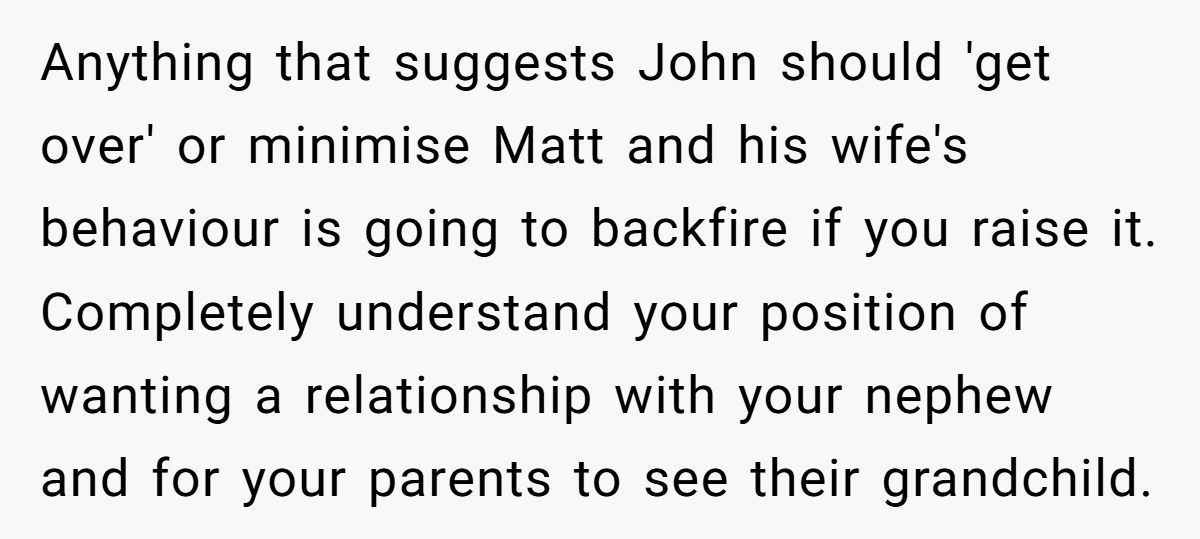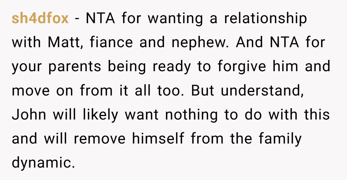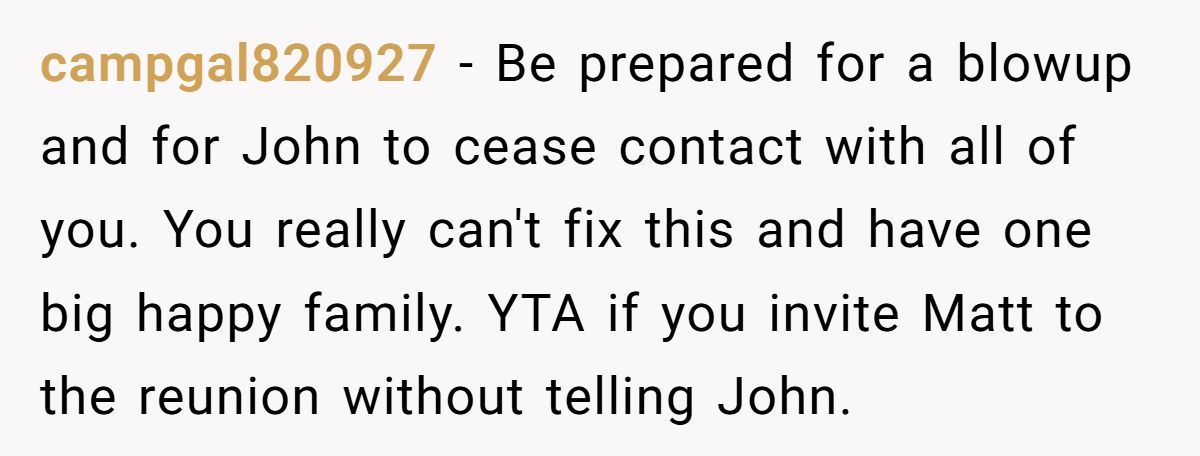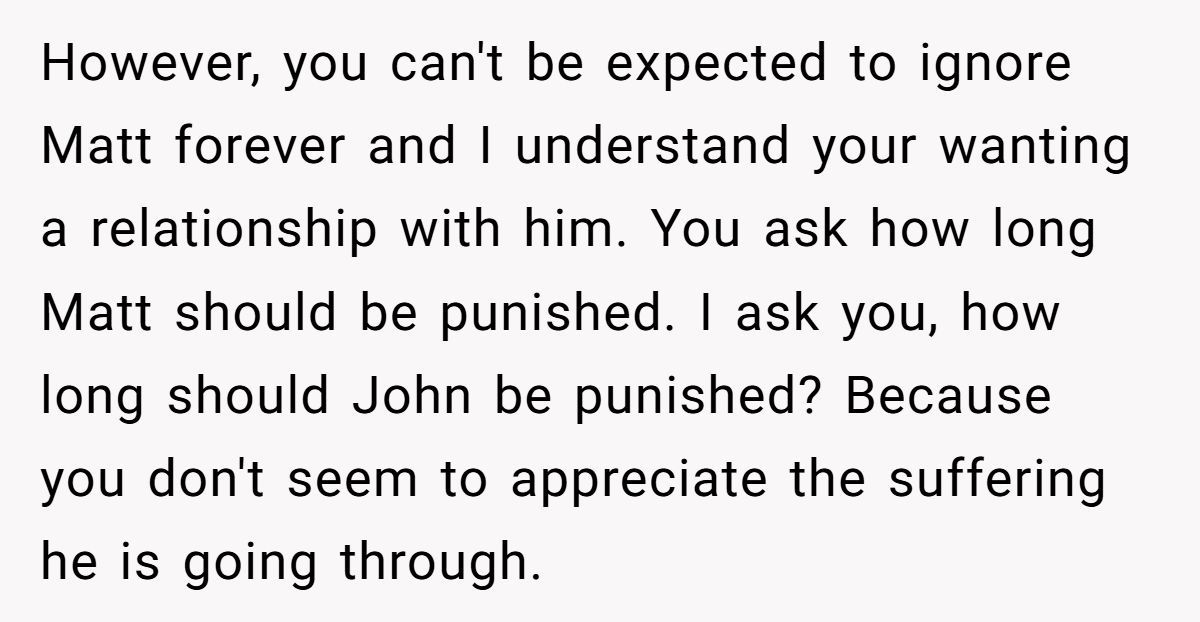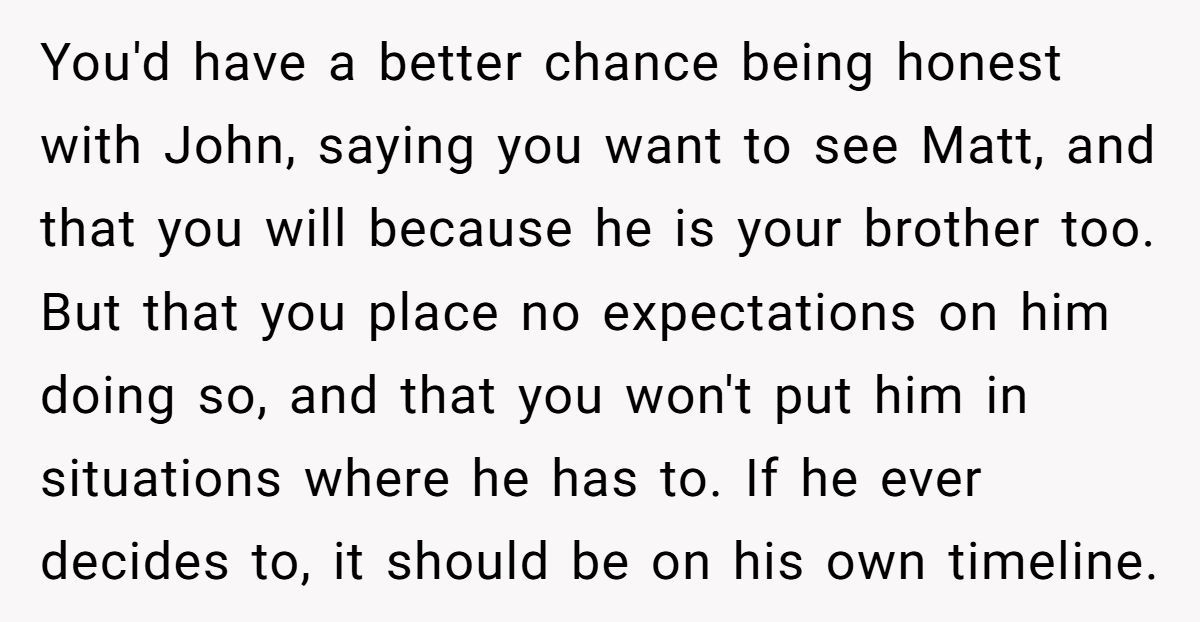 These Redditors sympathized with OP’s wish to reconnect but warned that pushing Matt’s return without John’s consent could fracture the family further