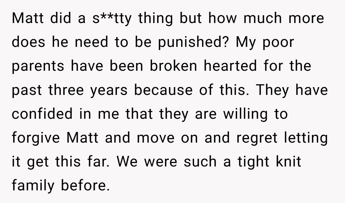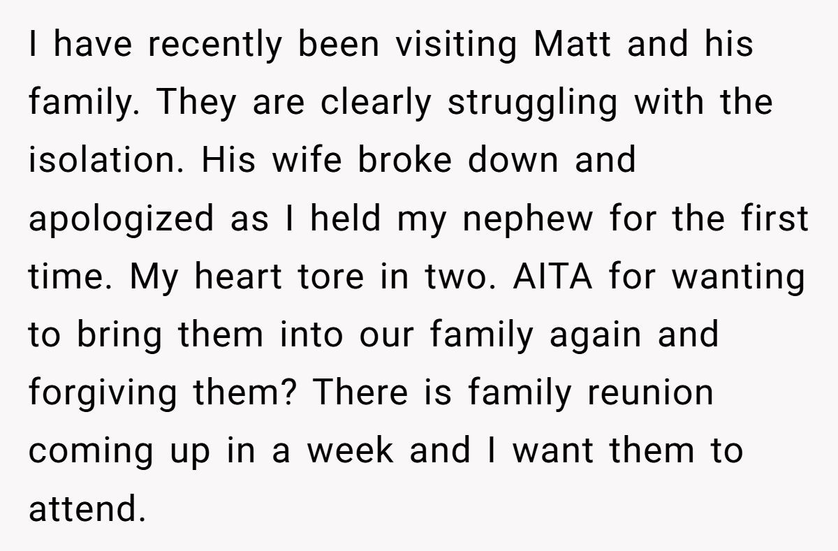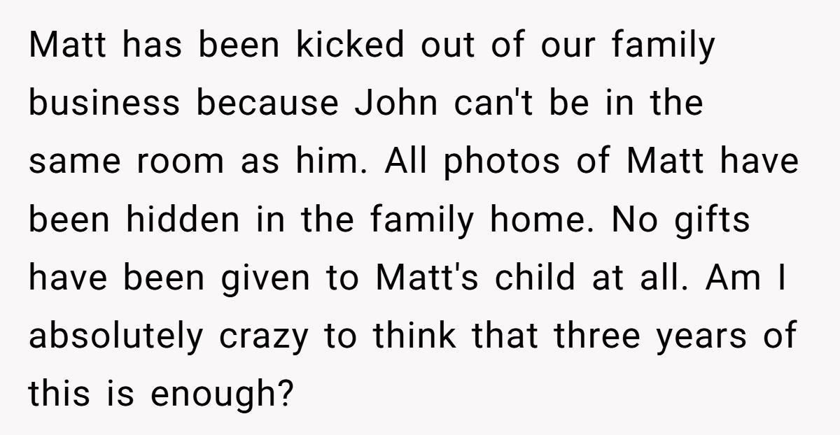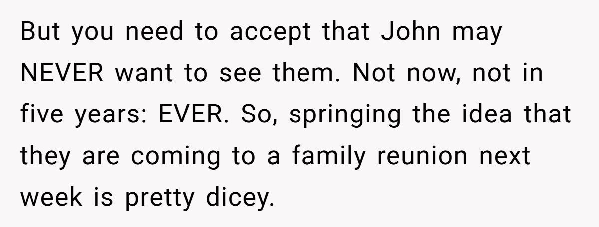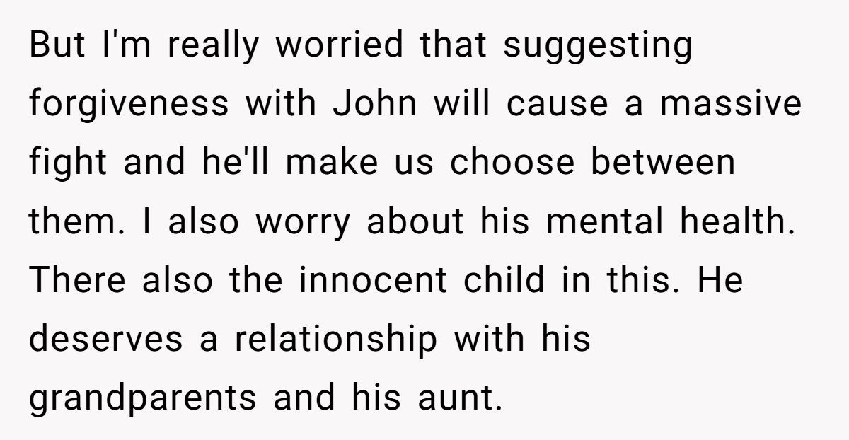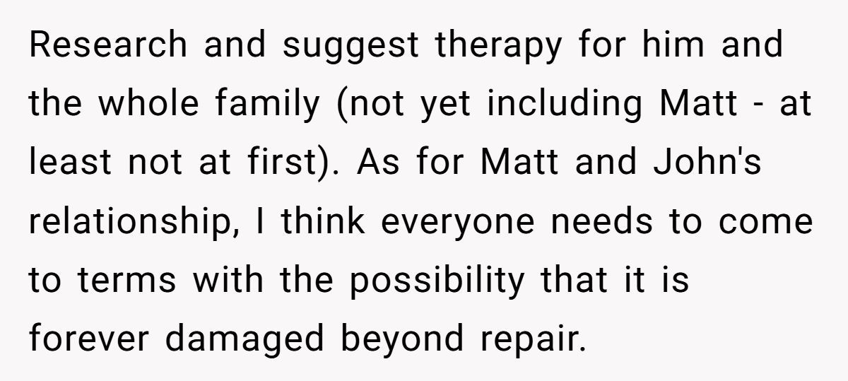 These Redditors sympathized with OP’s wish to reconnect but warned that pushing Matt’s return without John’s consent could fracture the family further