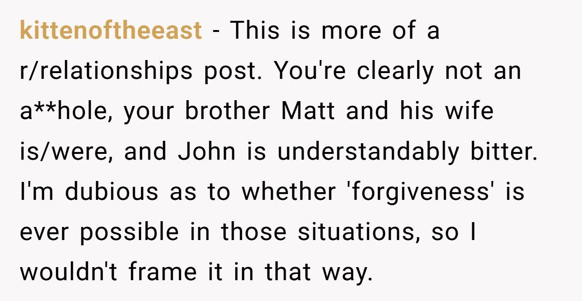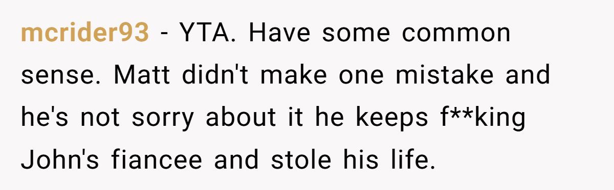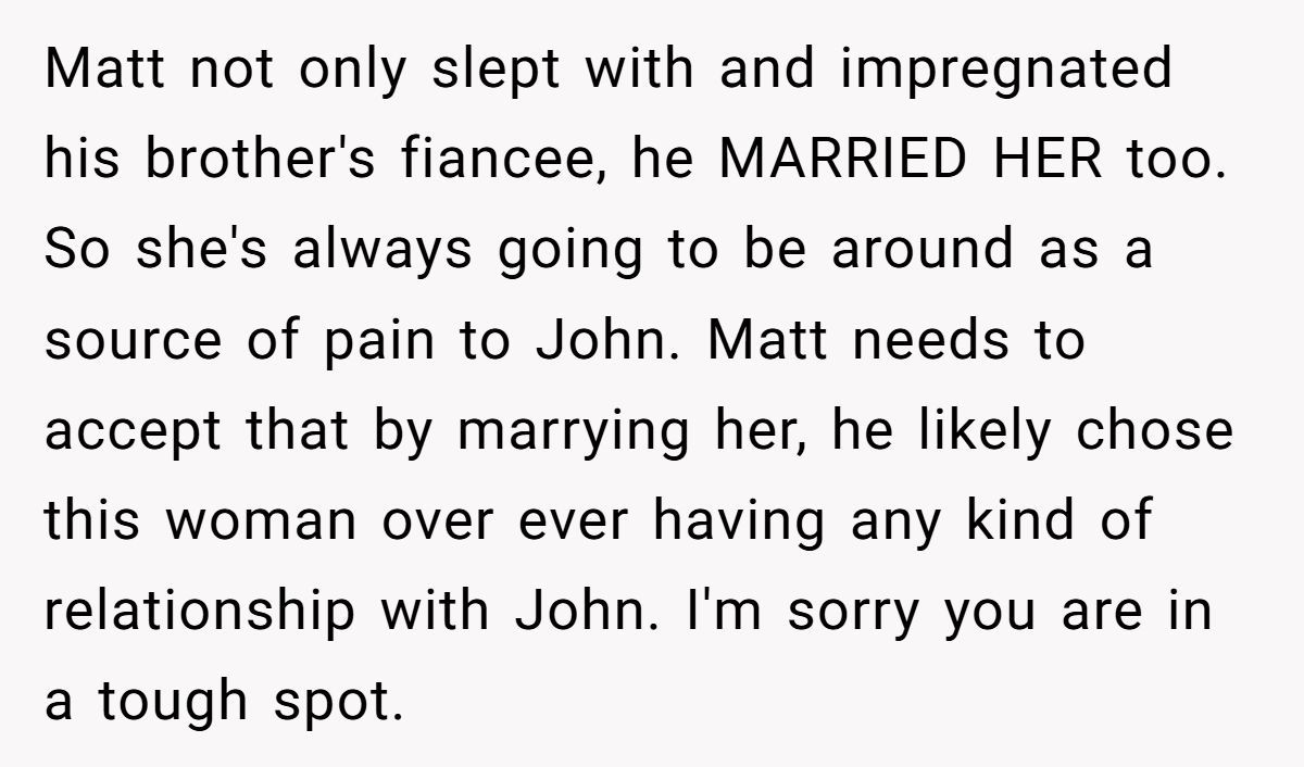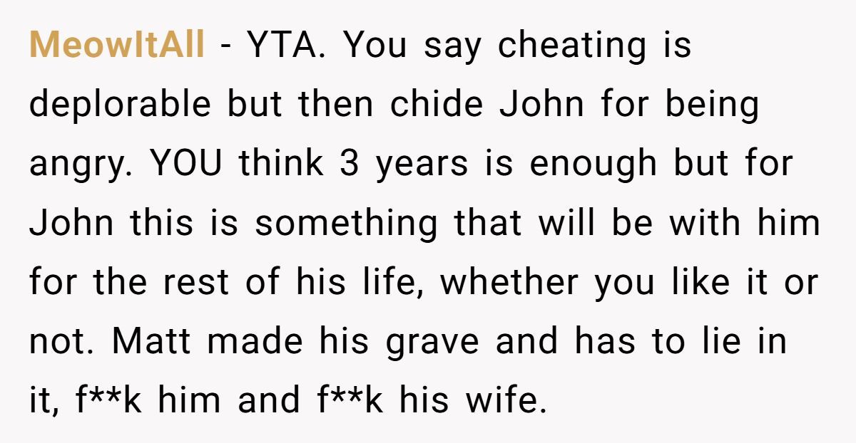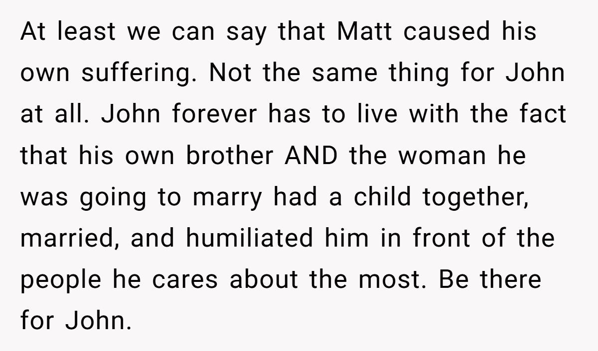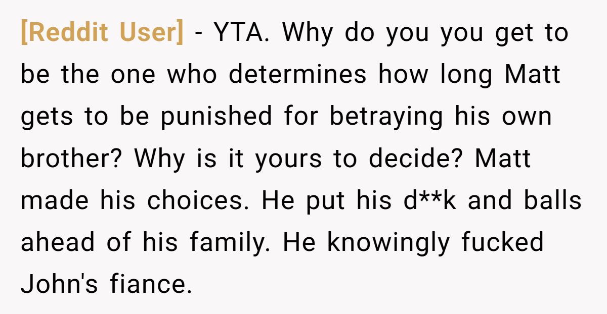 These Redditors called OP out, insisting John’s betrayal justifies his stance and inviting Matt risks further hurting him