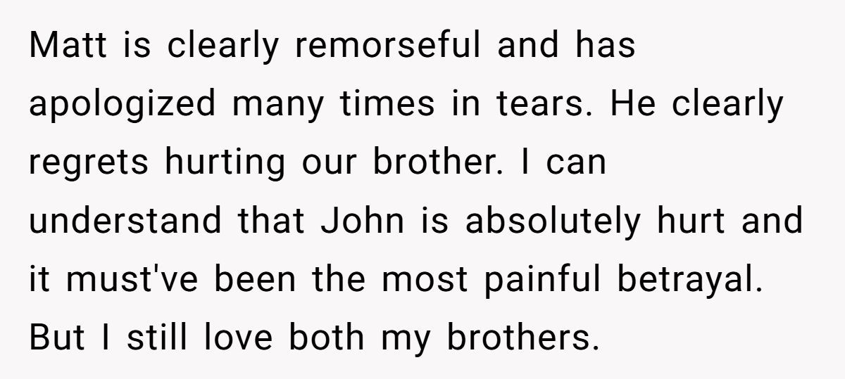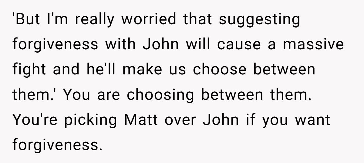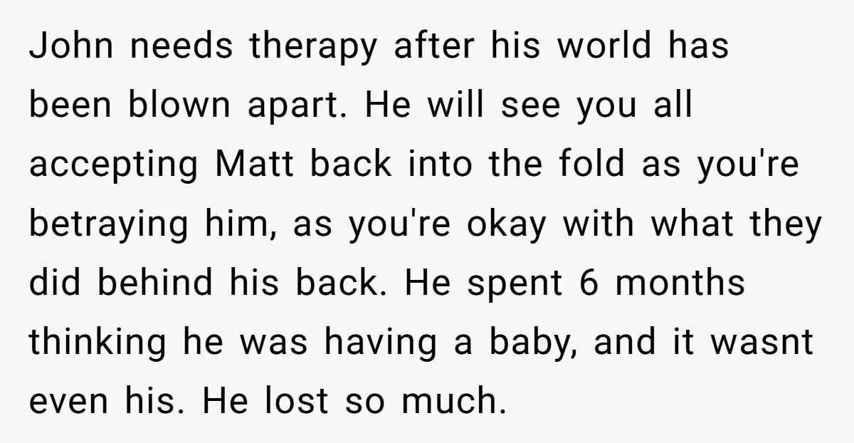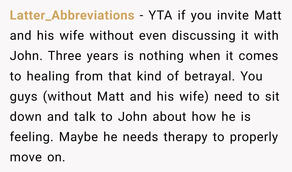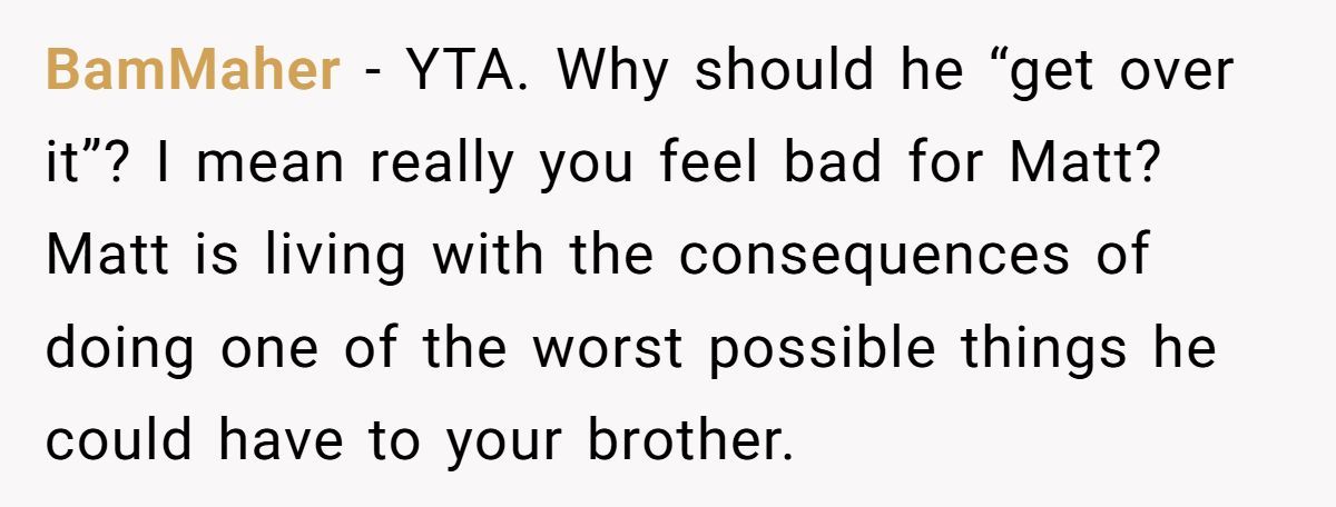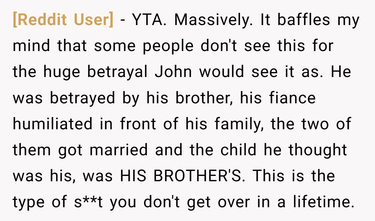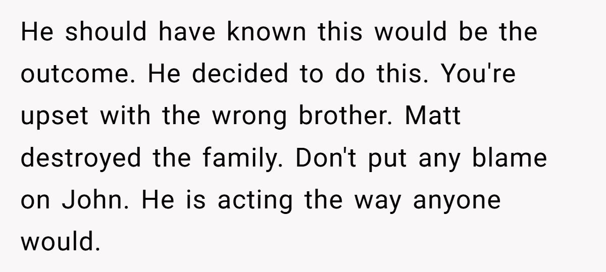 These Redditors called OP out, insisting John’s betrayal justifies his stance and inviting Matt risks further hurting him
