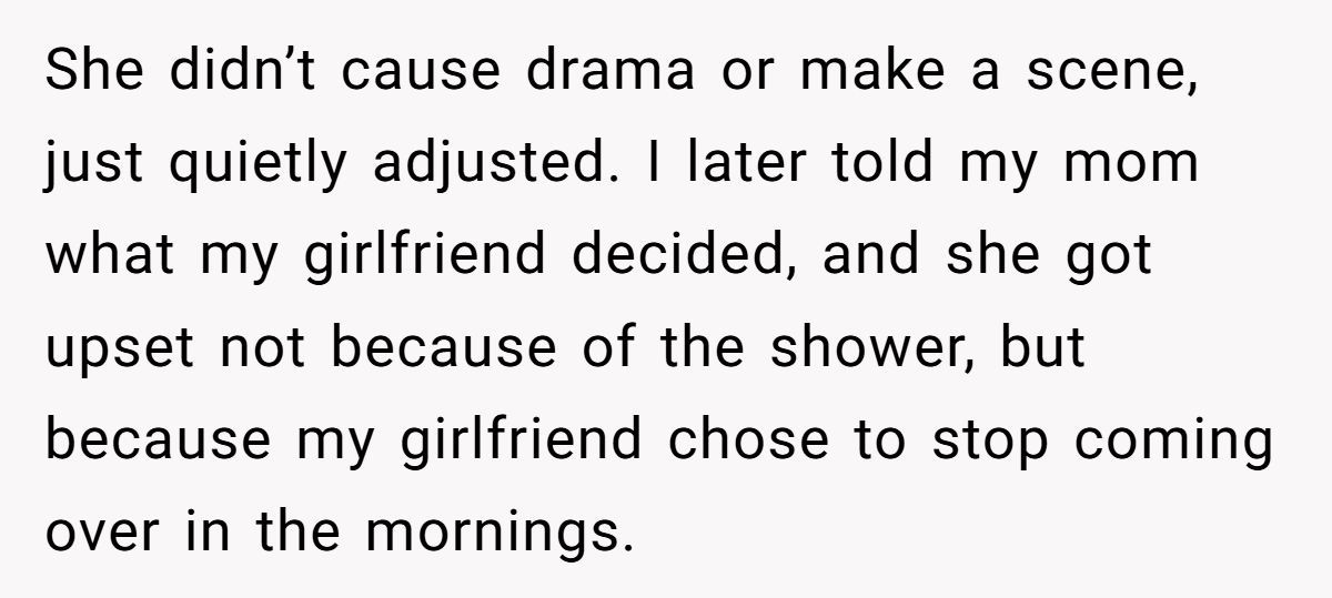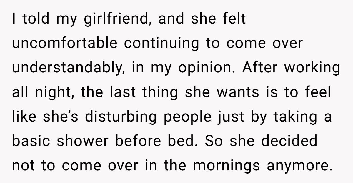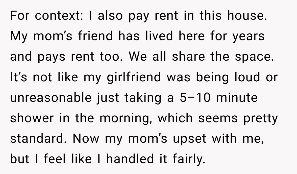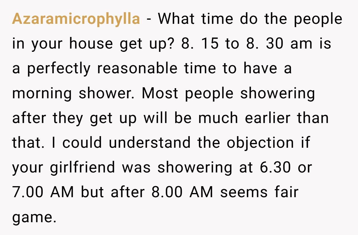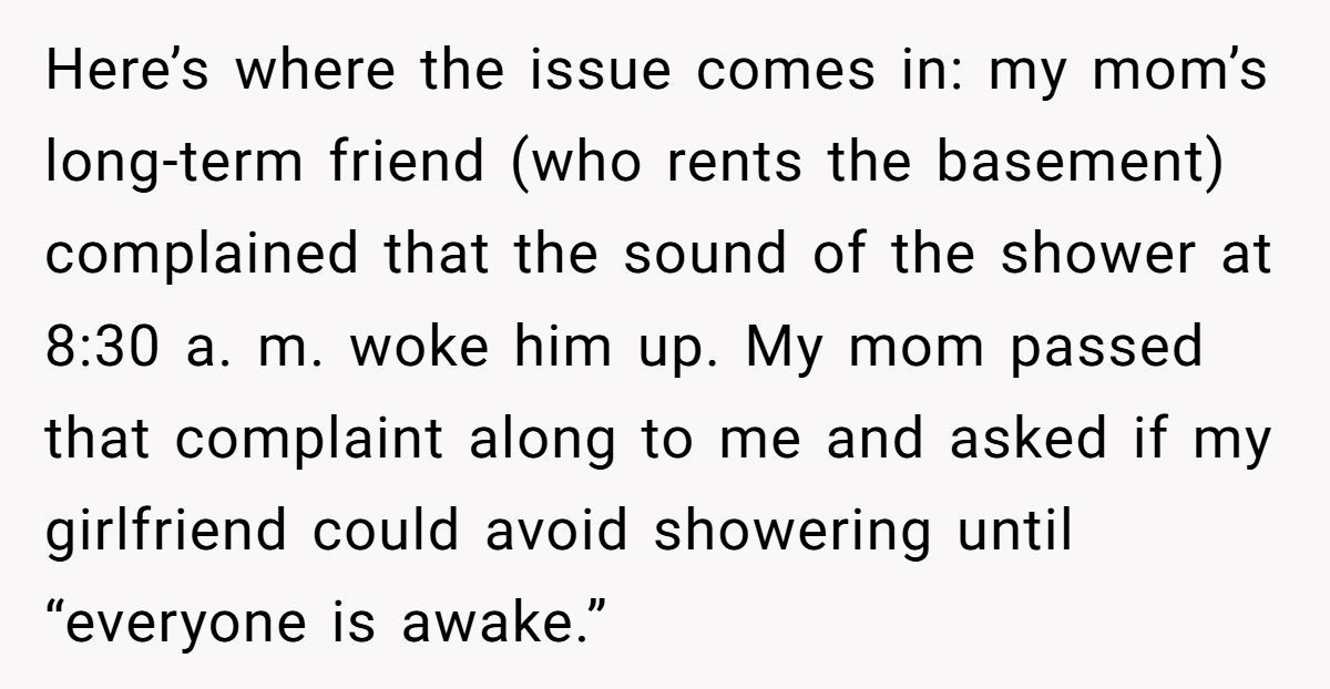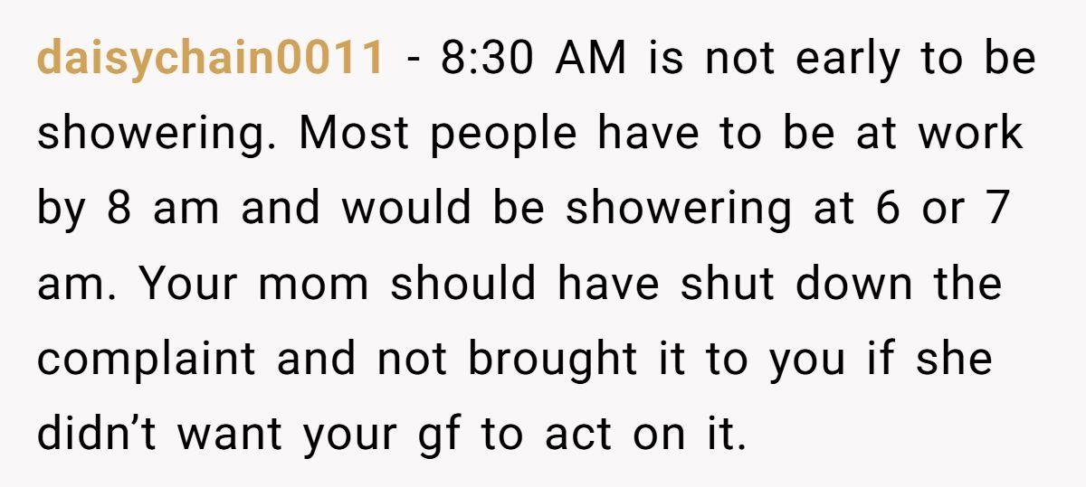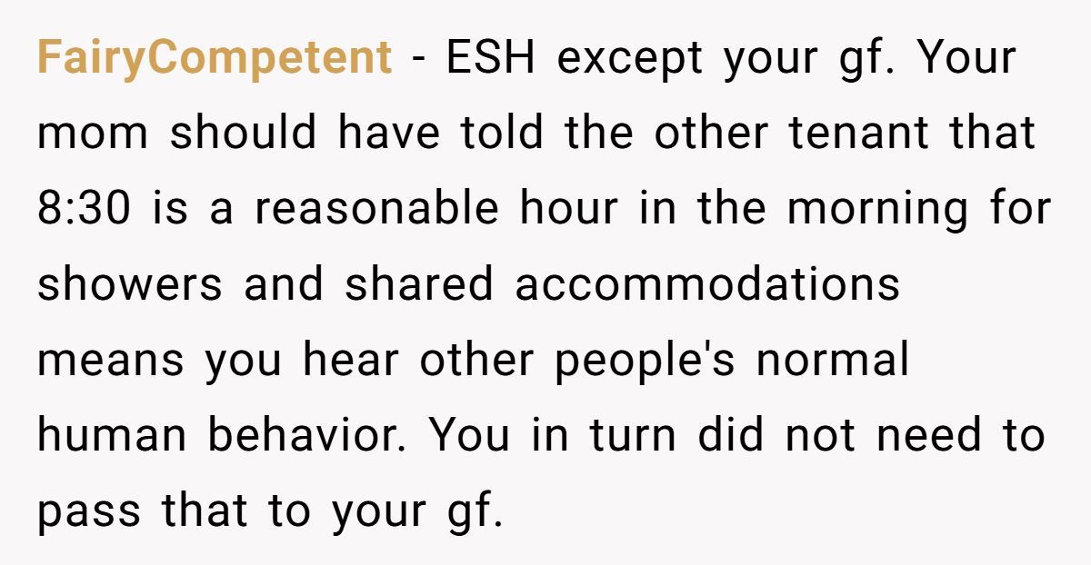These Redditors defended the girlfriend’s 8:30 AM shower as normal, calling the tenant’s complaint and Mom’s request absurd