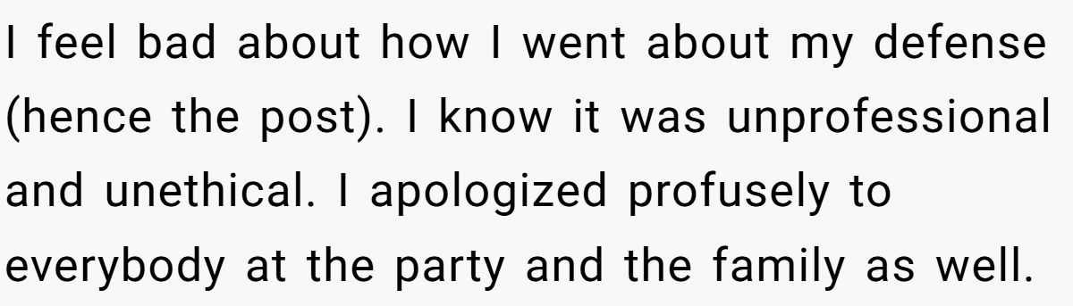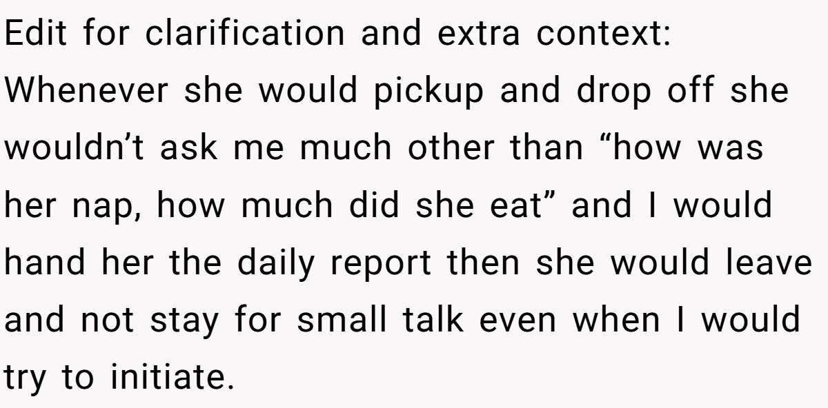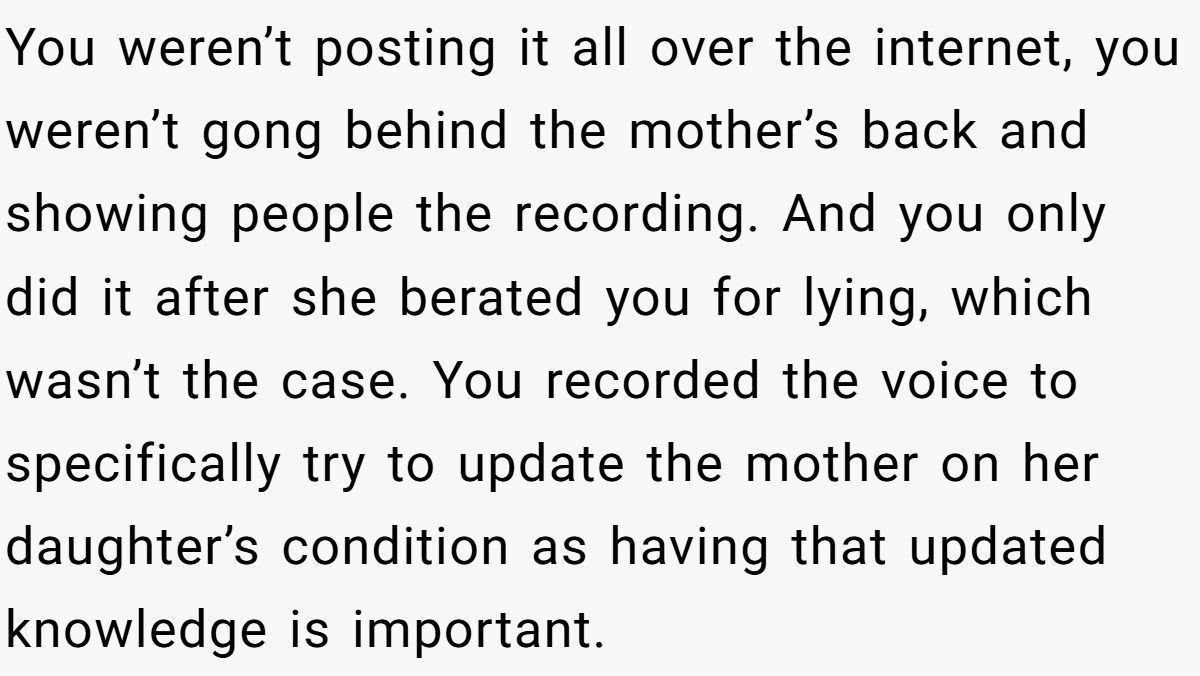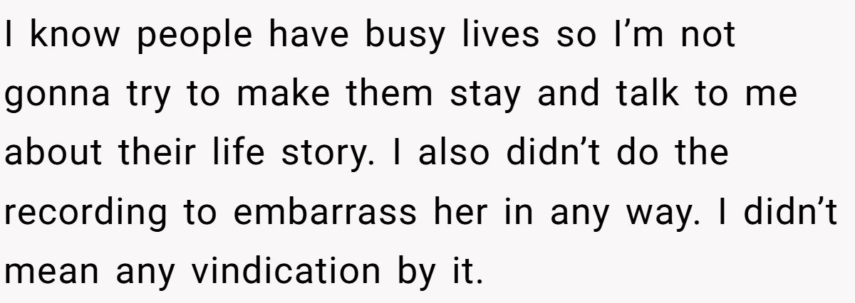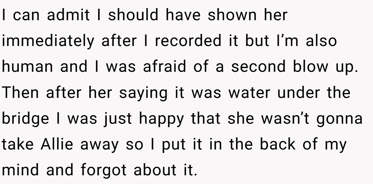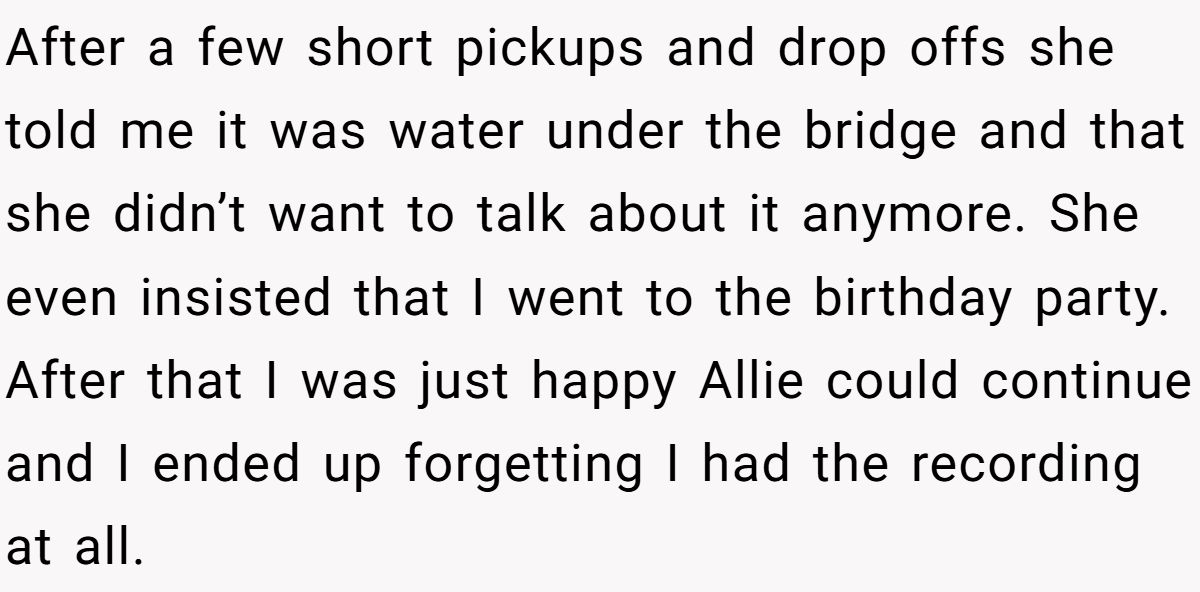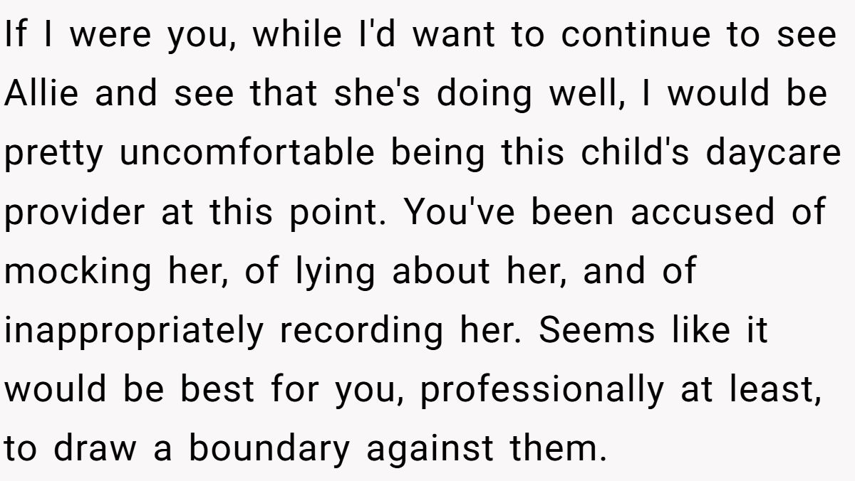 Still, in this case, OP didn’t post it online. She didn’t weaponize the recording until she was being verbally attacked in front of a crowd. And even then, she felt remorse. She apologized, promised policy updates, and vowed to install transparent monitoring in her daycare to prevent future confusion.