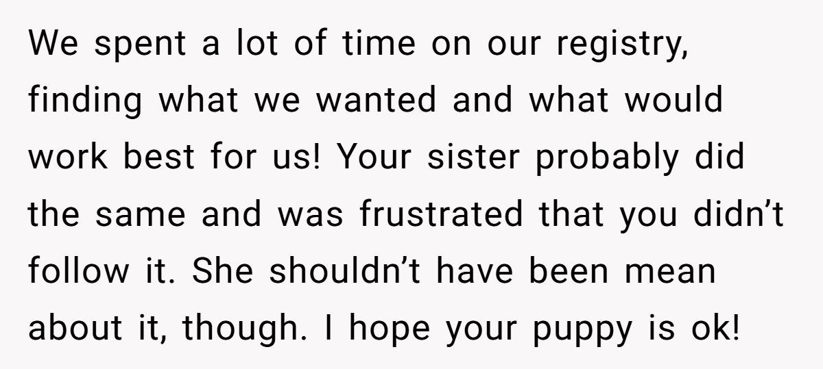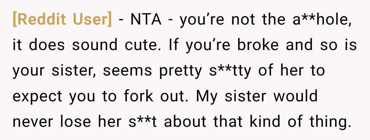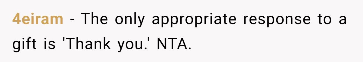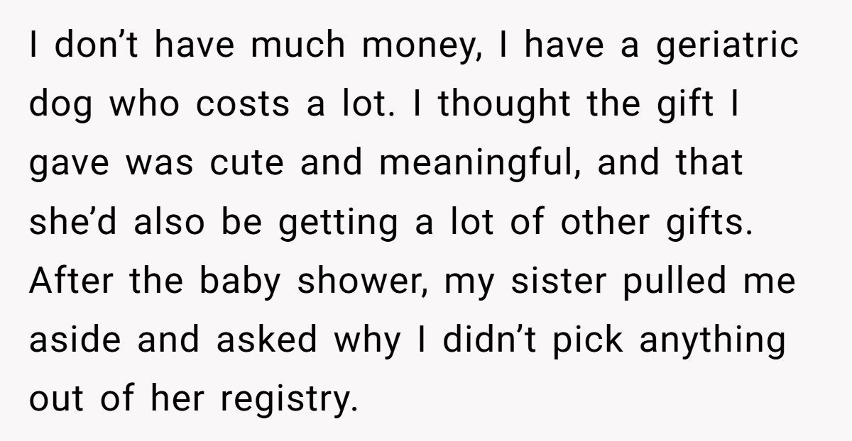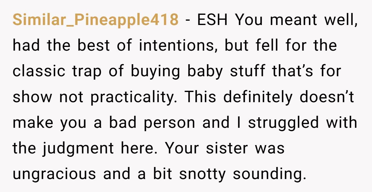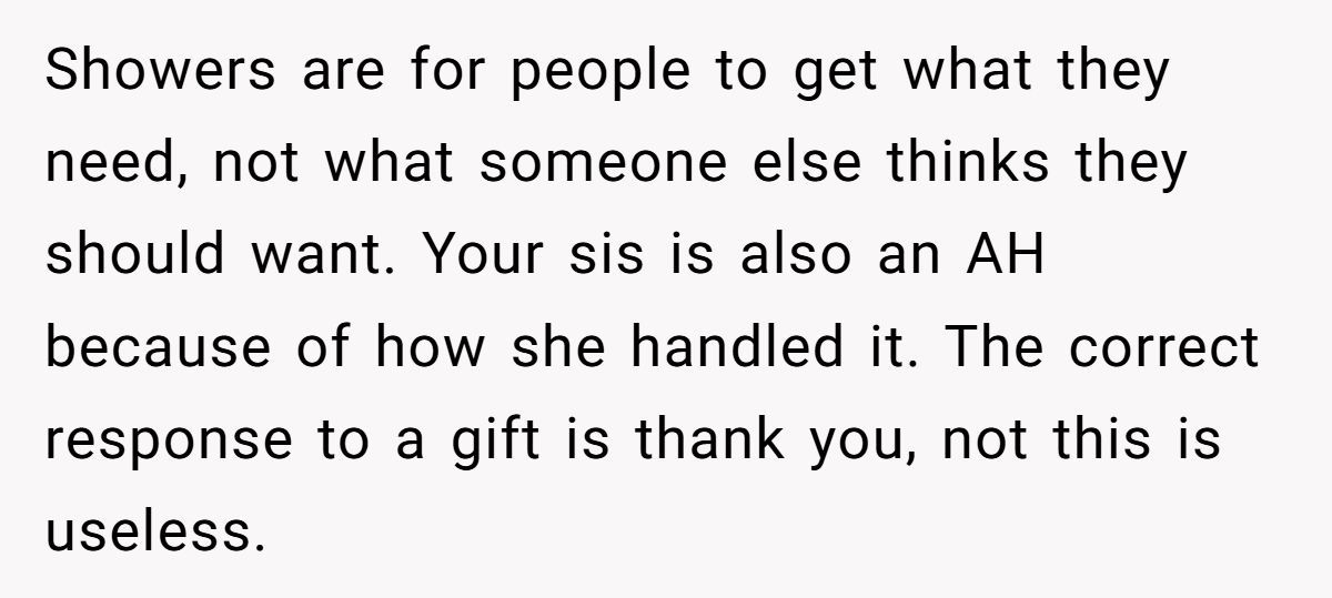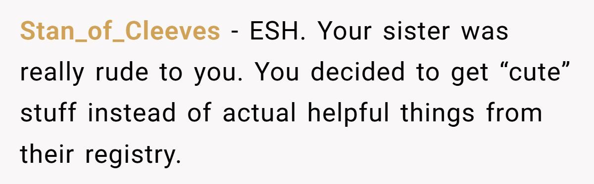 The real villain here? A lack of communication. Had the giver explained her financial situation, or asked her sister if she could go the creative route, this might’ve ended differently. And if the sister had simply said “thank you,” maybe this wouldn’t even be a Reddit post.
