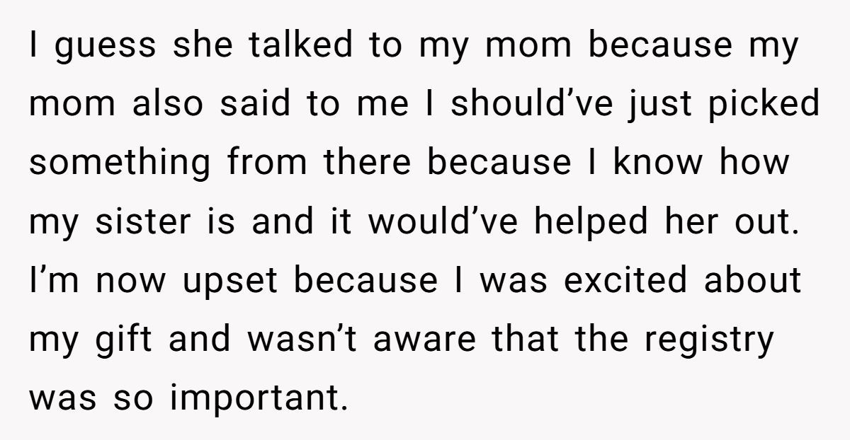 Now their mom’s involved, the sister’s upset, and the gift-giver is questioning everything. Was it really such a big deal? Reddit had a lot to say.