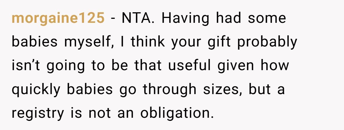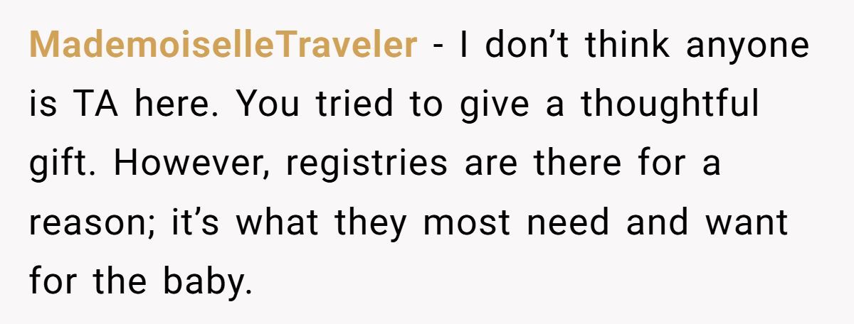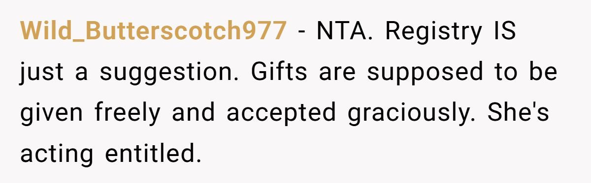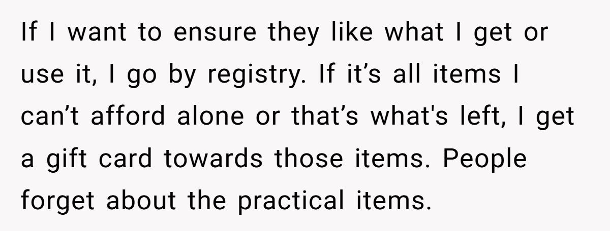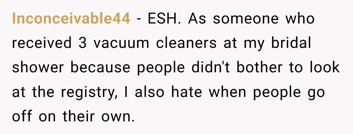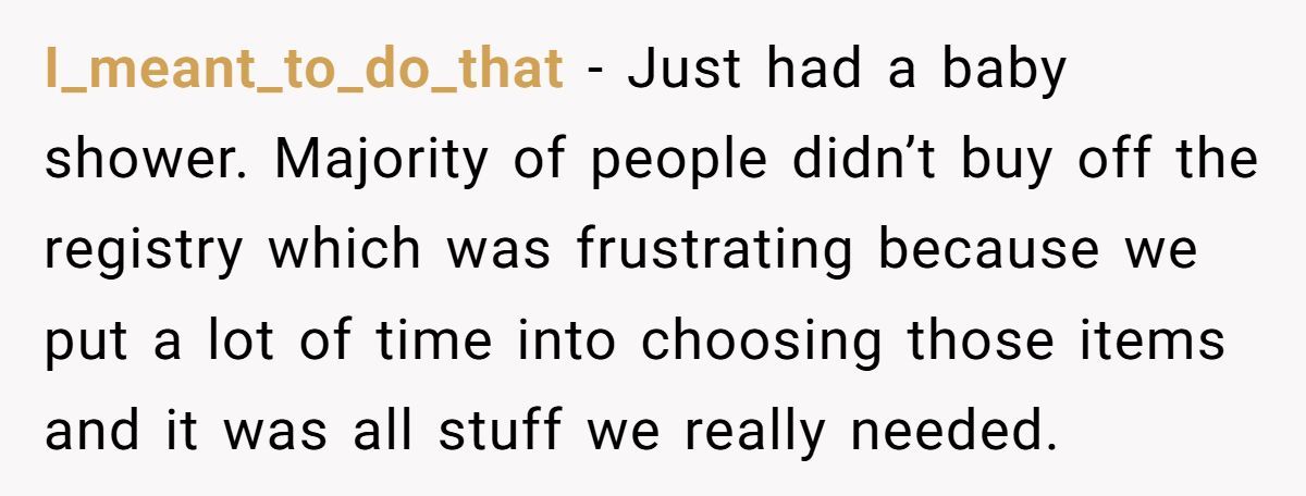 The debate over gift registries isn’t new—but this story highlights how emotional the gap can be between intention and expectation. Personalized gifts feel special. Registries cover needs. The real magic happens when people respect both.