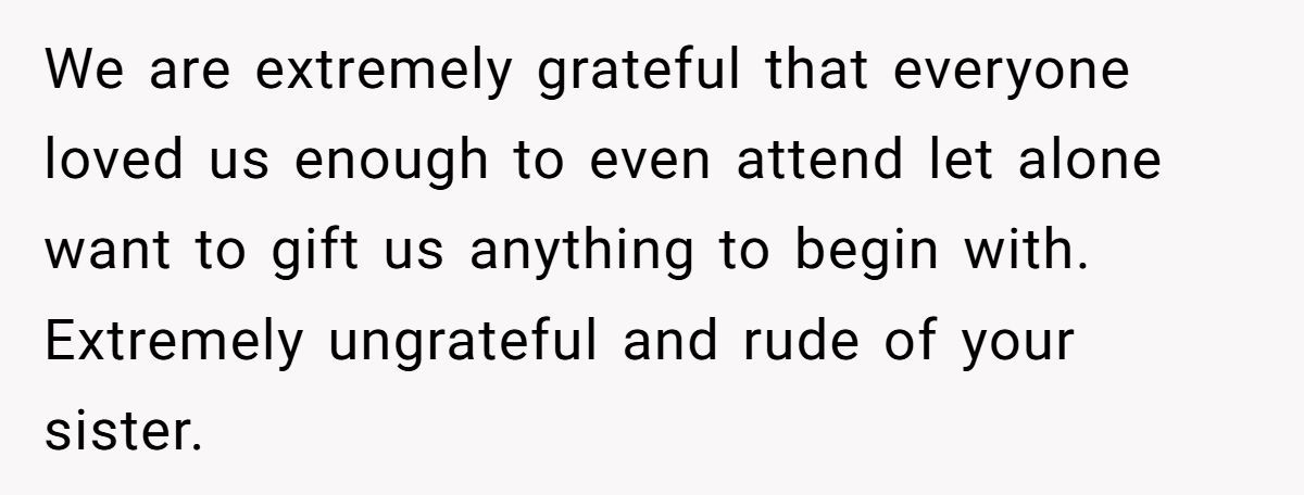 These commenters claimed the sister was entitled, advising gratitude for gifts