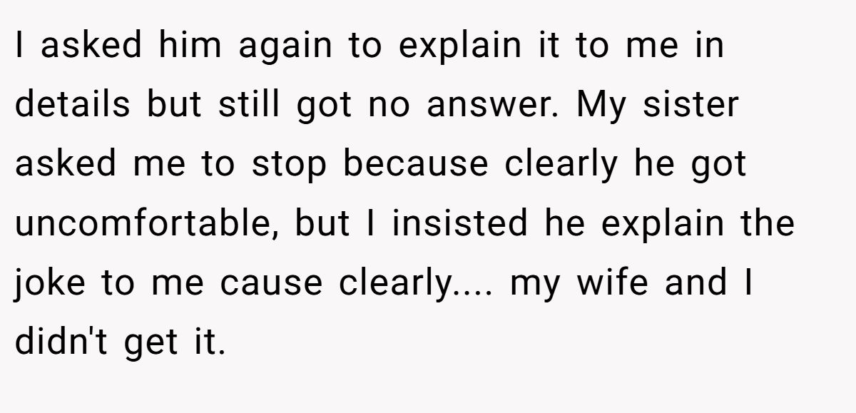 Instead of lashing out, he simply asked the boyfriend to explain the joke. Over and over. In front of everyone. The result? A grown man bolting from the table and a sister screaming about “anger issues.” But was the husband really in the wrong—or was he the only one doing the right thing? Let’s look at what happened.