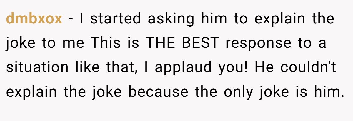 Dmbxox applauded the Redditor’s “explain the joke” tactic as perfect for exposing the boyfriend.