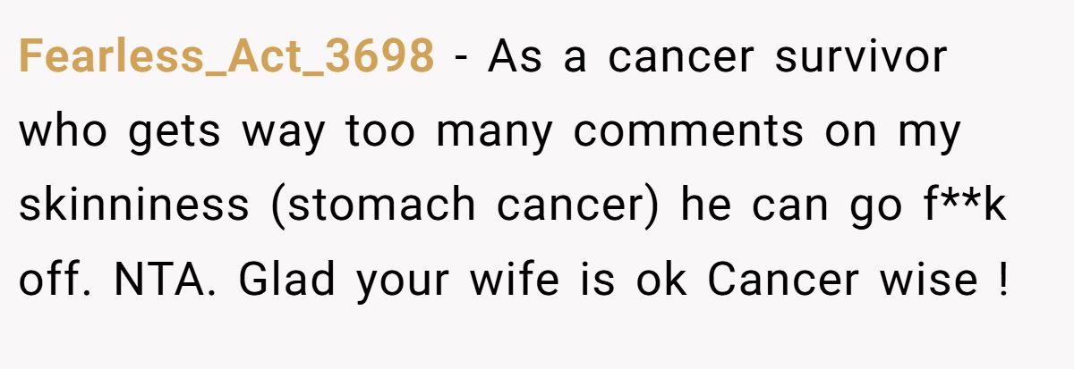 Fearless_Act_3698, a cancer survivor, related to the wife’s pain, calling the boyfriend heartless.