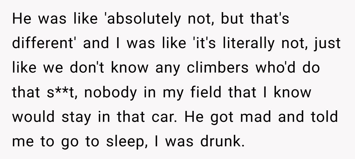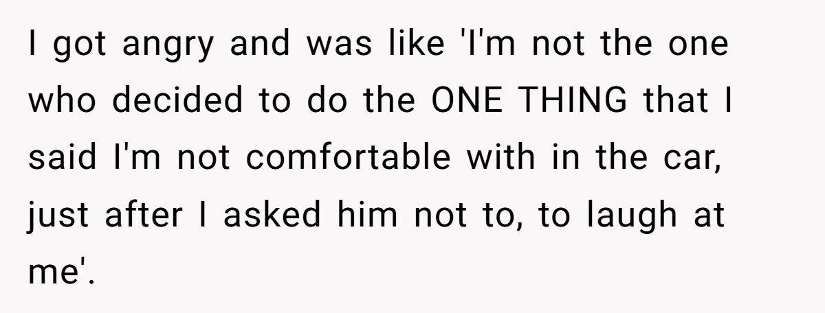 Reading this made my chest tighten. There’s a specific kind of dread that comes when your boundaries are laughed at—especially by people you’ve just met, especially in a moving vehicle, and especially when your expertise is being mocked. I could almost feel the powerlessness through the screen.