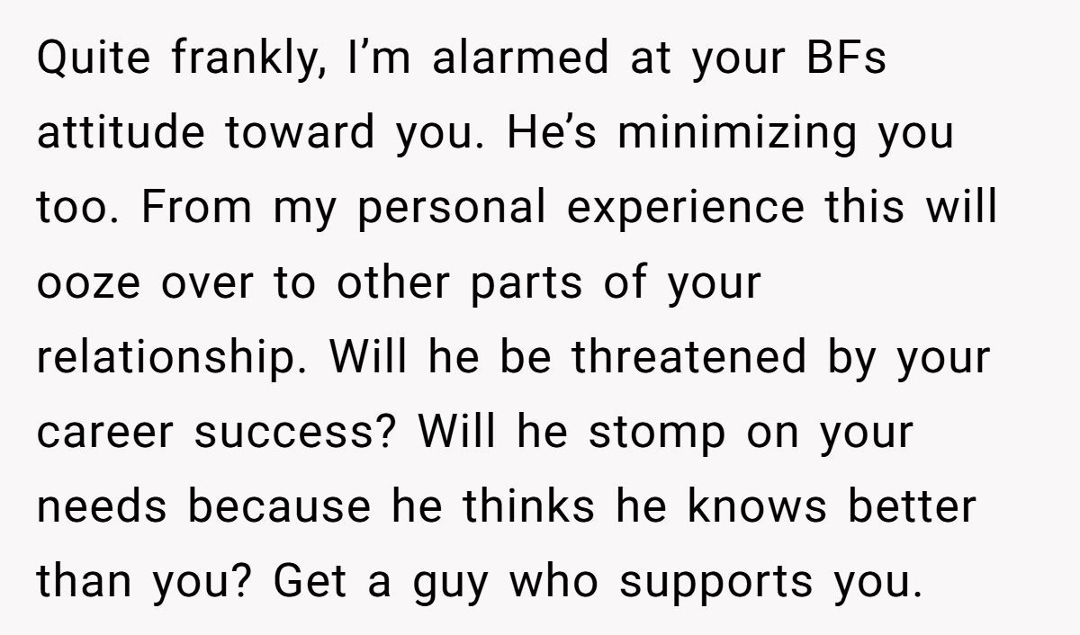 These commenters claimed the family disrespected her professional knowledge, advising her to stand firm on her boundary
