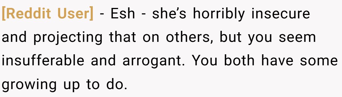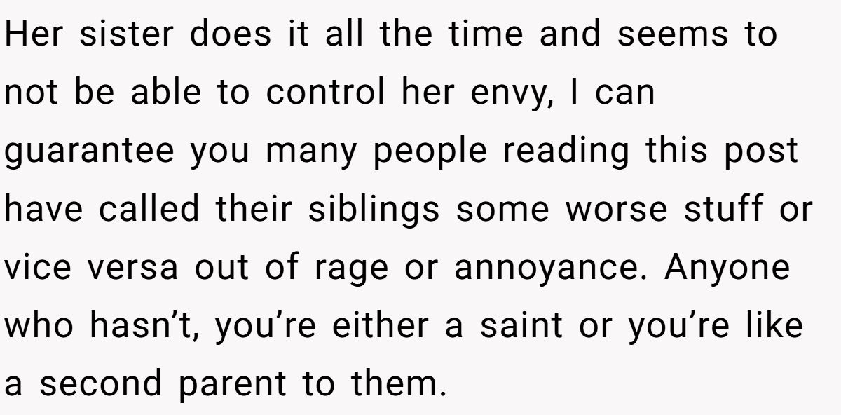 Psychologist Dr. Susan Forward says, “Siblings need boundaries to avoid toxic patterns, but cruelty escalates conflict”. This fits—the Redditor could’ve called out the jealousy without personal attacks. A calmer approach, like highlighting her hard work, might’ve kept the peace.