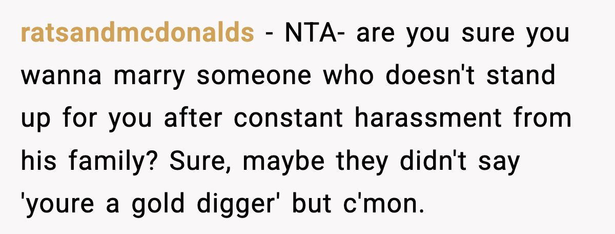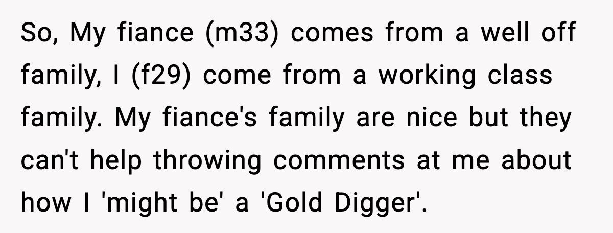 One woman faced relentless jabs from her fiance’s wealthy family, accusing her of being a gold digger