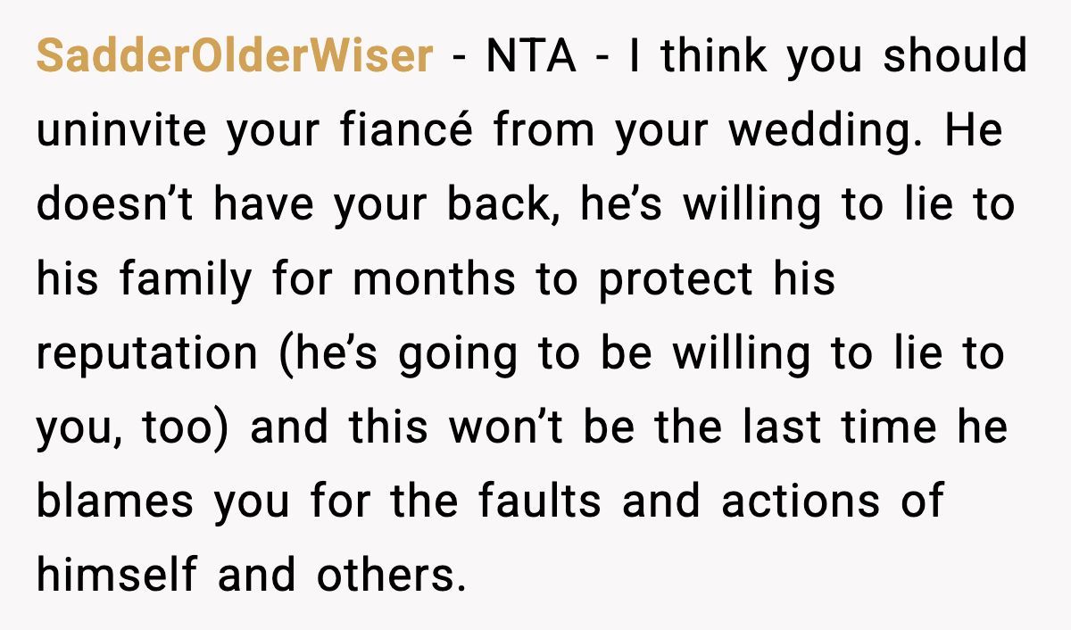 A commenter mocked the fiance’s “innocent bystander” claim, calling him out for inaction.