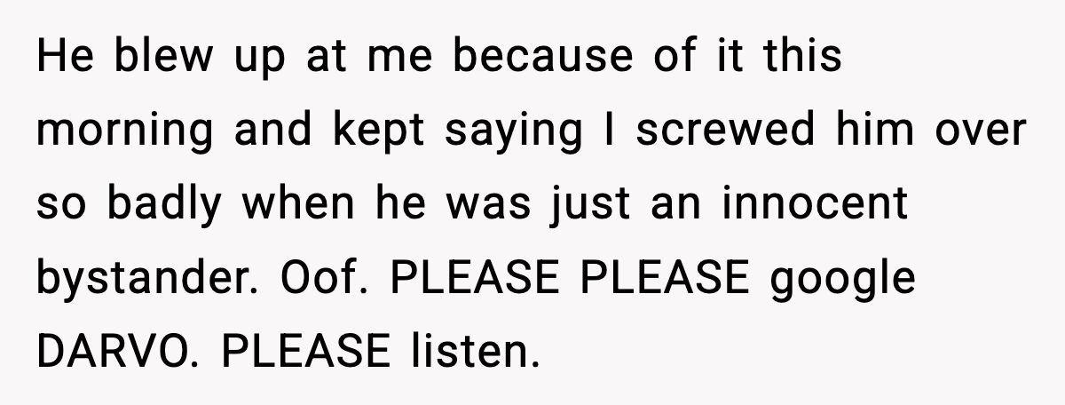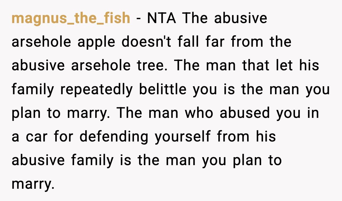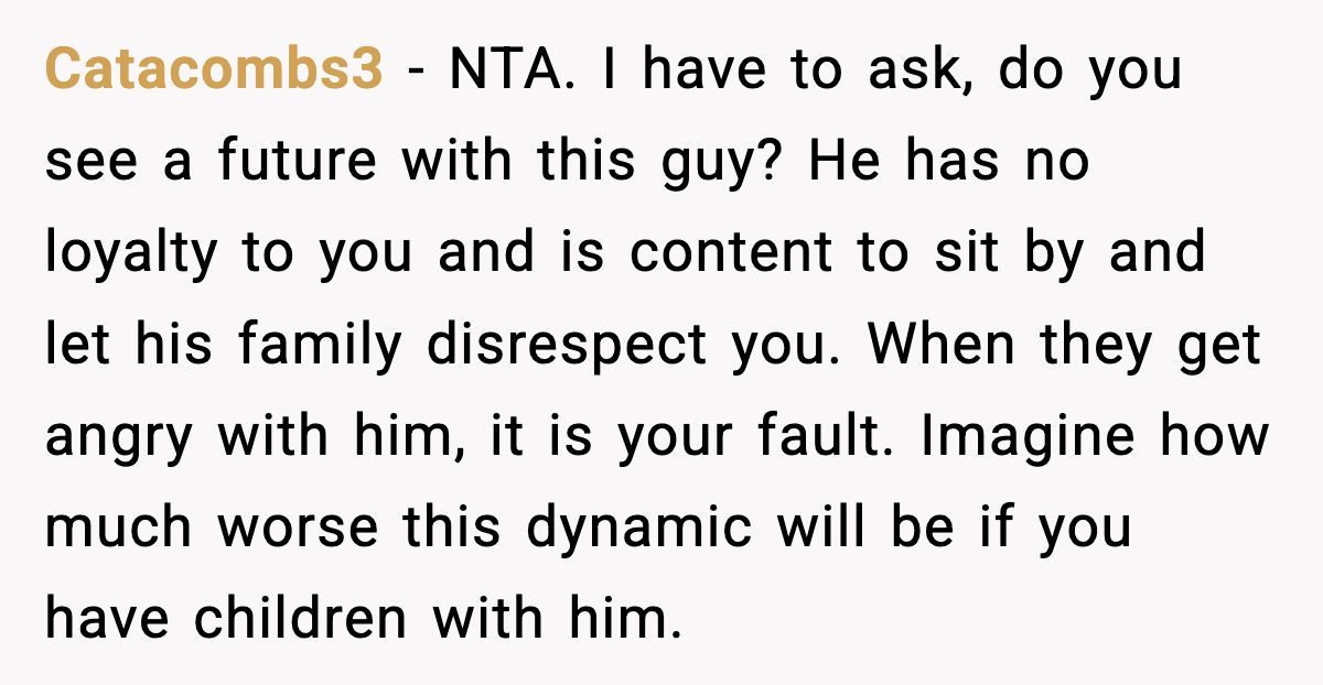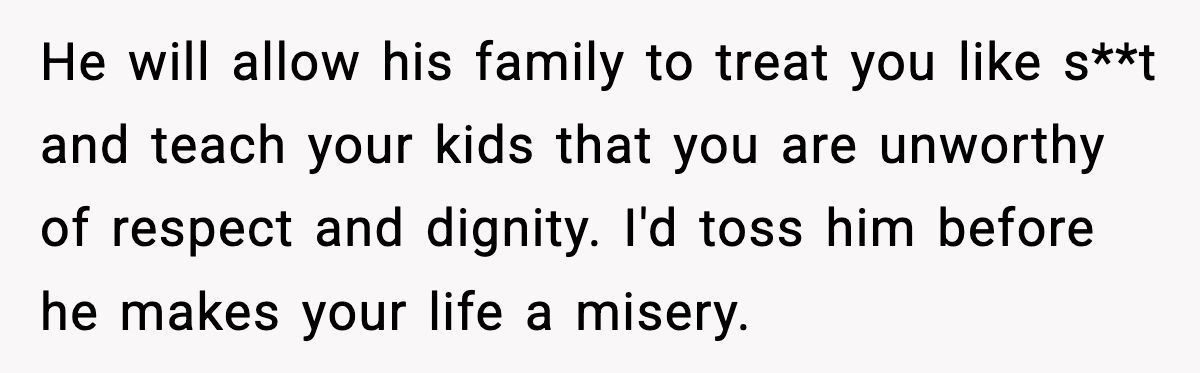 So what should OP have done? Setting clear boundaries sooner might have spared some drama, but let’s not ignore the elephant in the room: she shouldn’t have had to defend herself in the first place. If a partner won’t protect you from cruelty—especially from their own family—it’s not just a red flag. It’s a neon sign flashing: “Run.”