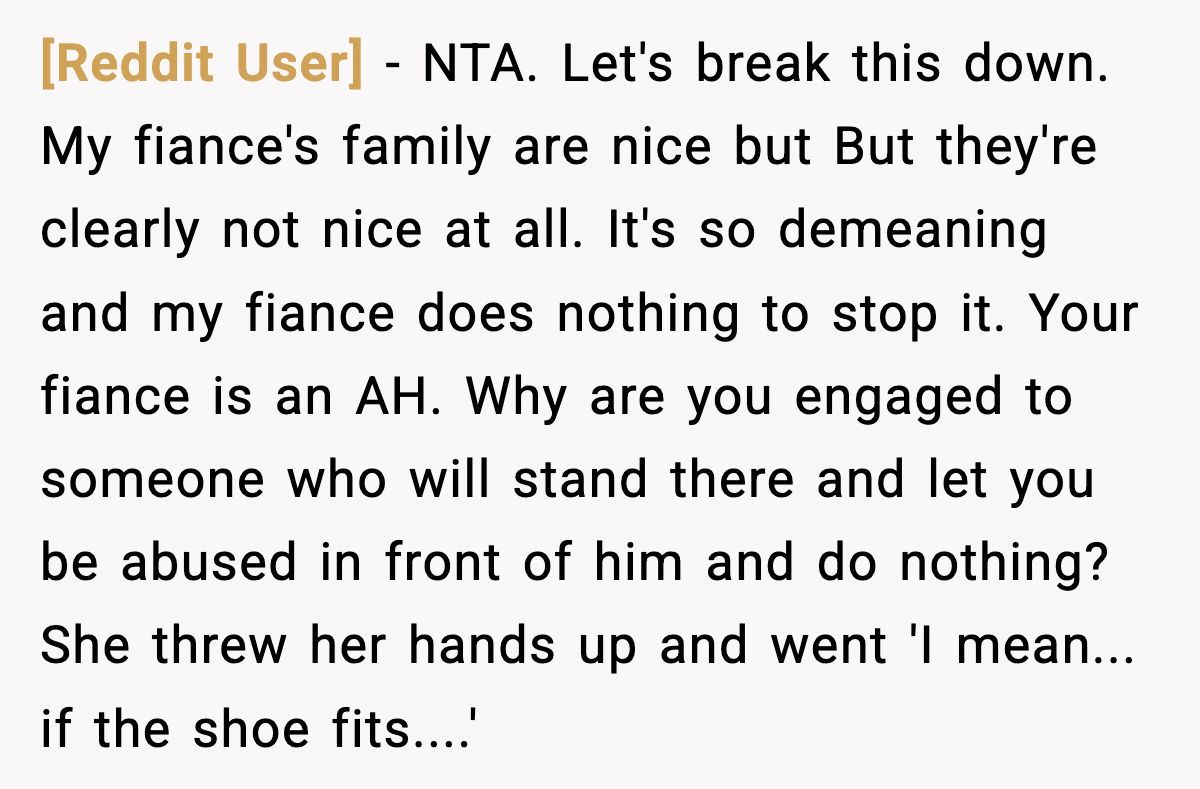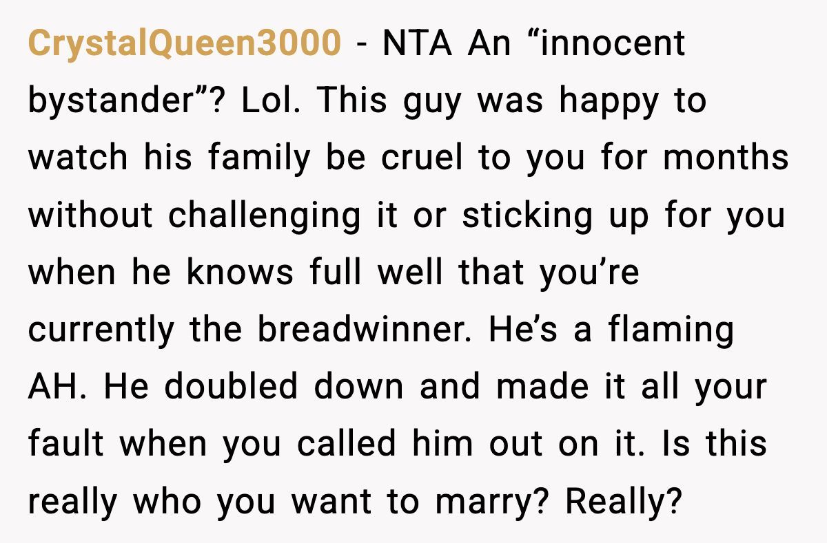 Navigating in-law drama is hard enough—but when your partner stands by while you’re publicly humiliated? That crosses into emotional negligence. In this case, the original poster (OP) found herself repeatedly belittled by her fiancé’s family while he remained silent—despite being secretly unemployed and financially dependent on her. His silence wasn’t just complicity. It was betrayal.