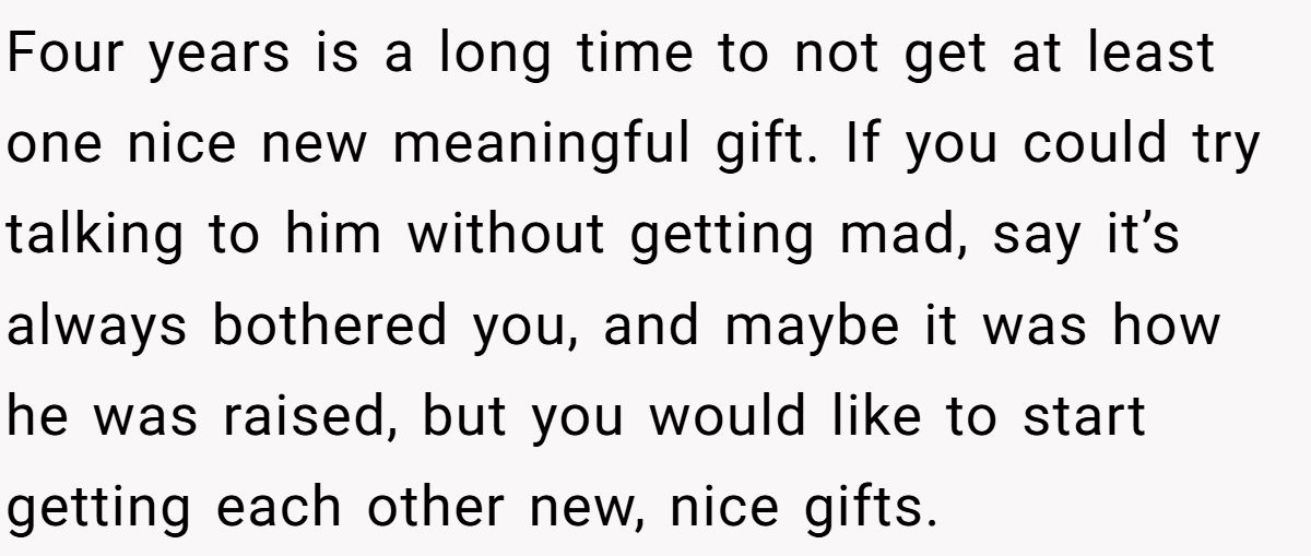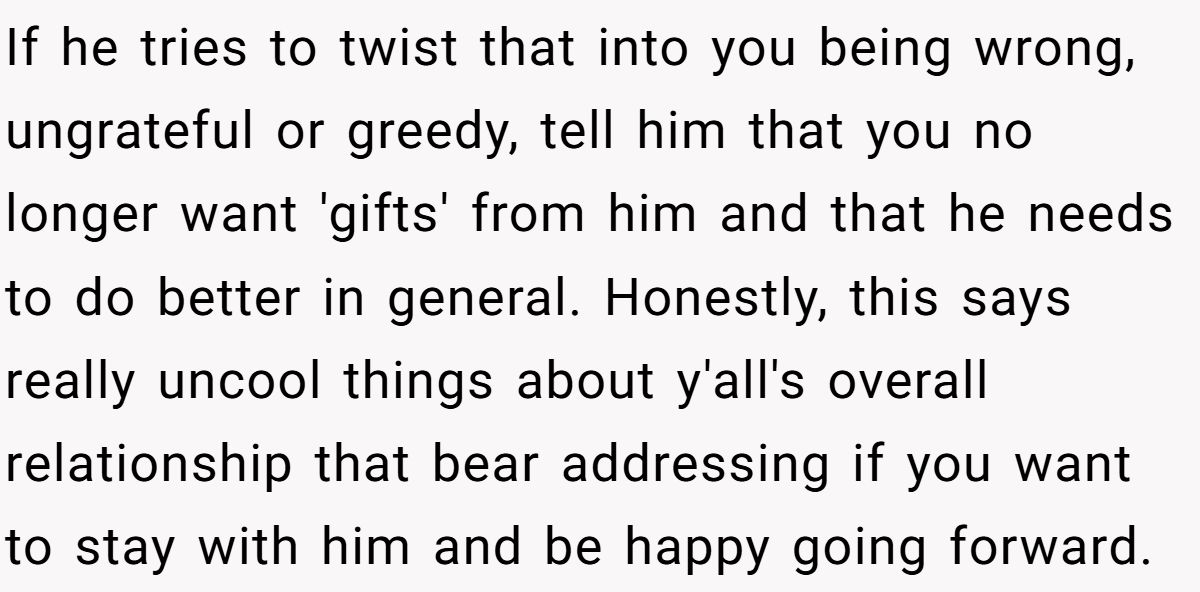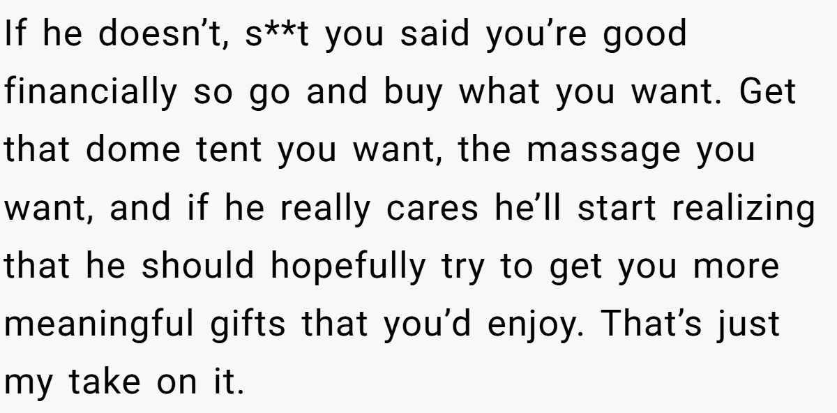 Relationship dynamics can highlight gifting issues. A 2022 study in the Journal of Social and Personal Relationships found that 20% of couple conflicts over gifts stem from mismatched expectations, often tied to perceived effort. Her partner’s pattern, despite their financial stability, suggests stinginess or a lack of care, especially if he buys new items for himself, as some Redditors questioned.