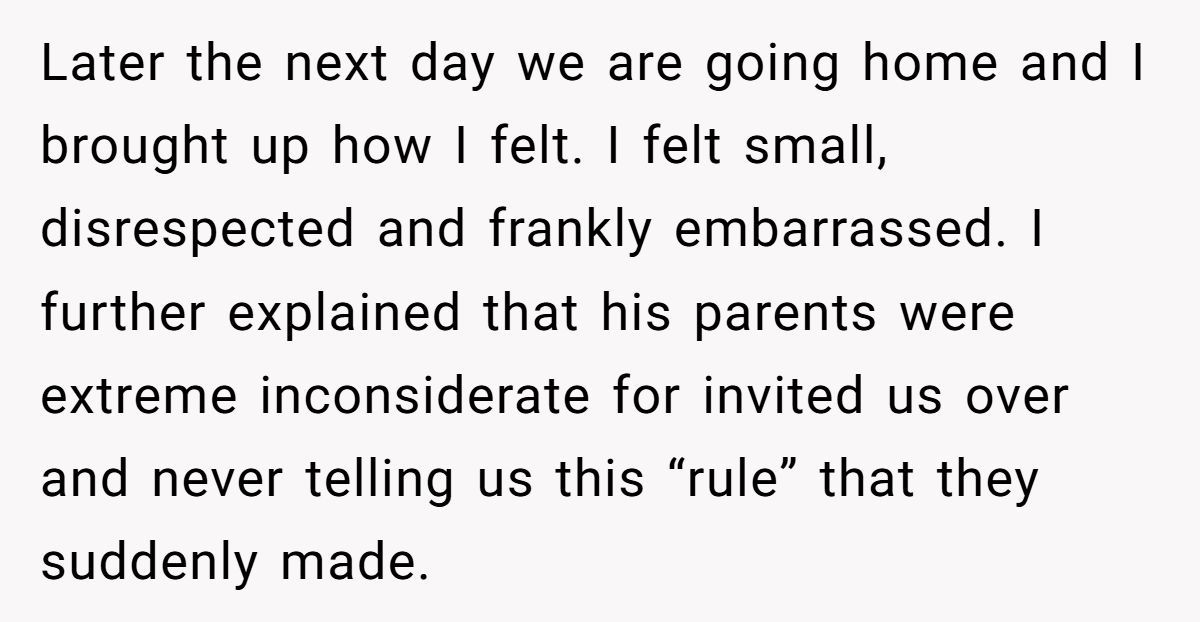 Even more troubling is how this “rule” was sprung on her after she’d already been invited, helped organize, and shown up in good faith. She wasn’t told she was excluded until she tried to participate—something that can feel like a deliberate humiliation tactic.
