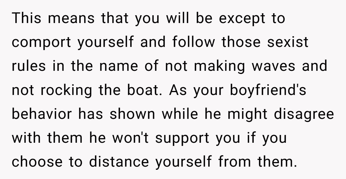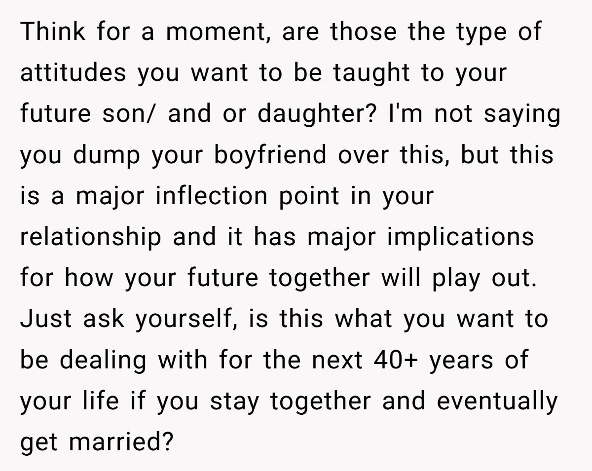 Commenters faulted the boyfriend for downplaying the issue as “old school,” urging the Redditor to reconsider a relationship with someone who won’t fully support her