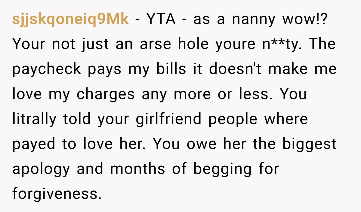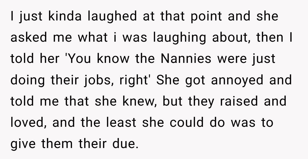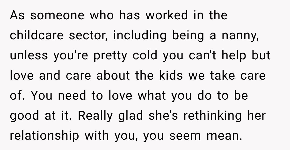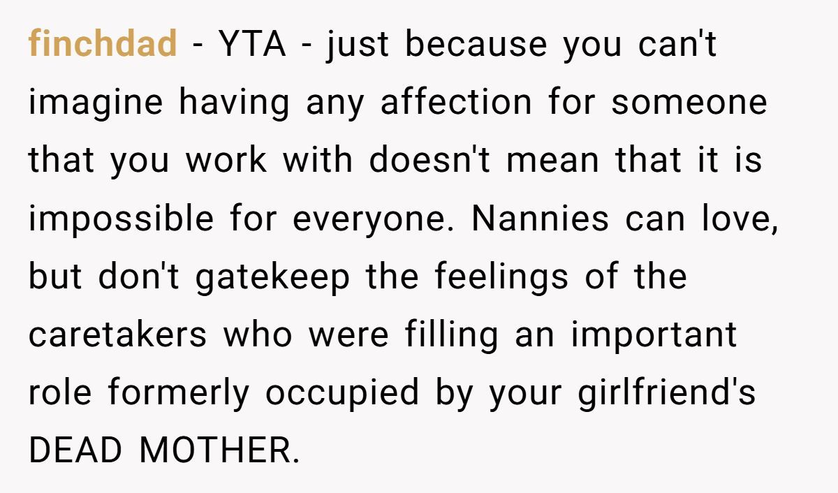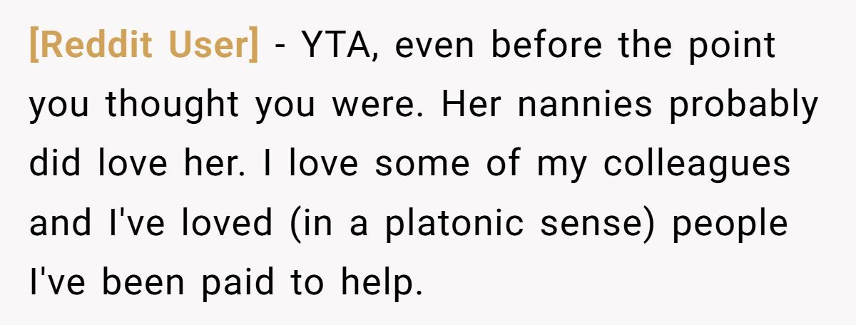 Some claimed nannies can truly love children, advising the Redditor to respect their bonds