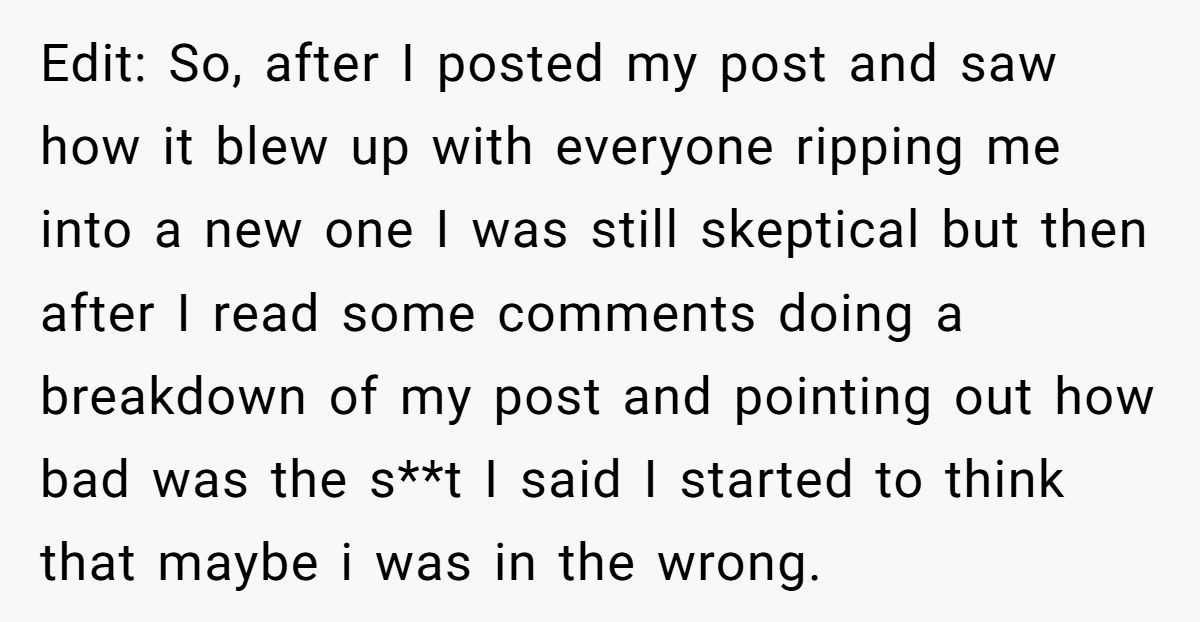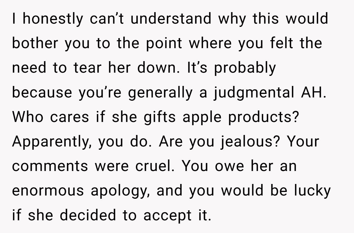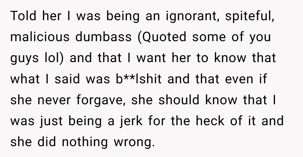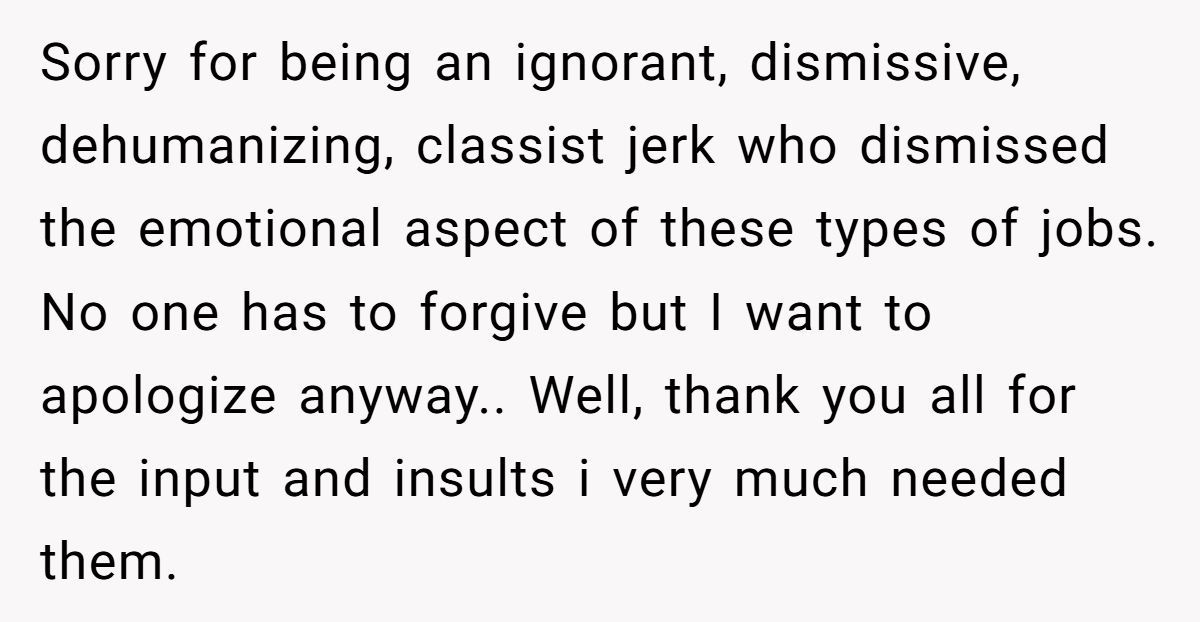 These commenters claimed the Redditor’s comment was heartless, advising a major apology