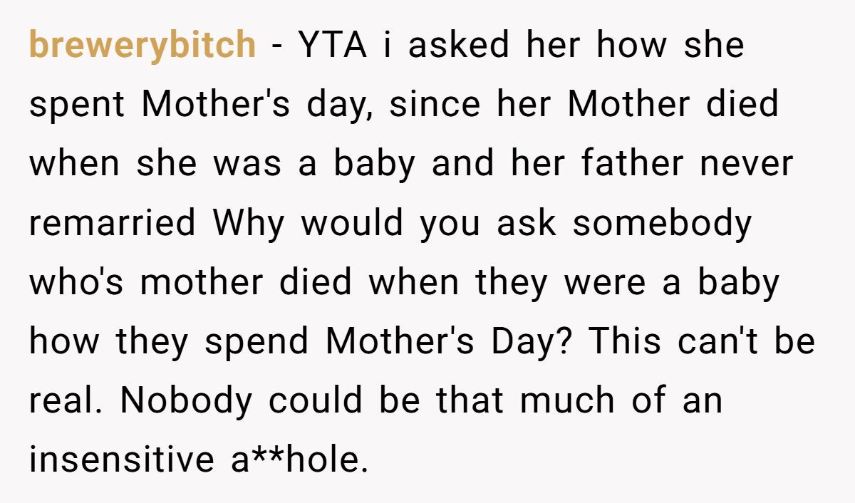 Some people claimed asking about Mother’s Day was insensitive, advising better tact