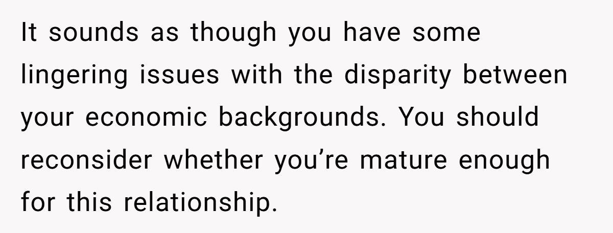 Was he the asshole for his remark, or did she overreact? How would you handle class gaps in a relationship? Share your thoughts below!