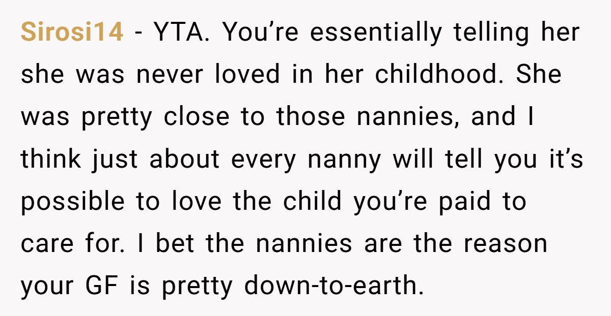 One man shared a story of mocking his girlfriend’s childhood bond with her nannies