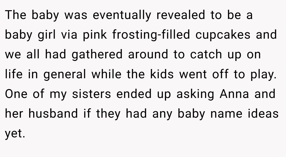 In this Reddit story, a woman found herself blindsided when her younger half-sister proudly announced her top baby name—only to realize it was identical to her daughter’s. The reaction? Let’s just say it wasn’t “congratulations.” What followed was a flurry of family tension, shouting, and emotional texts that split the entire household in two.