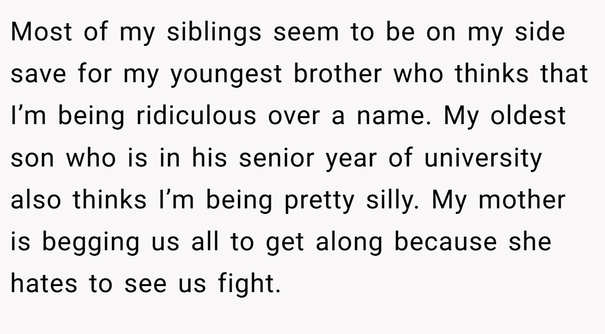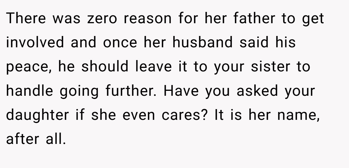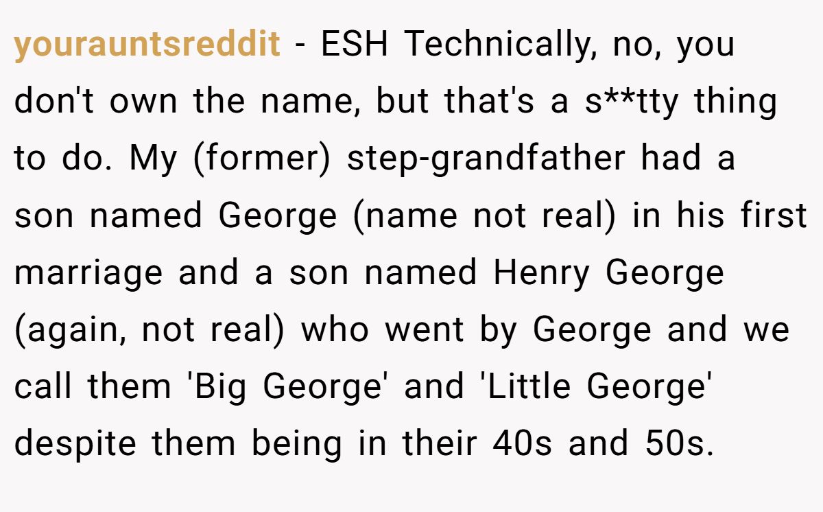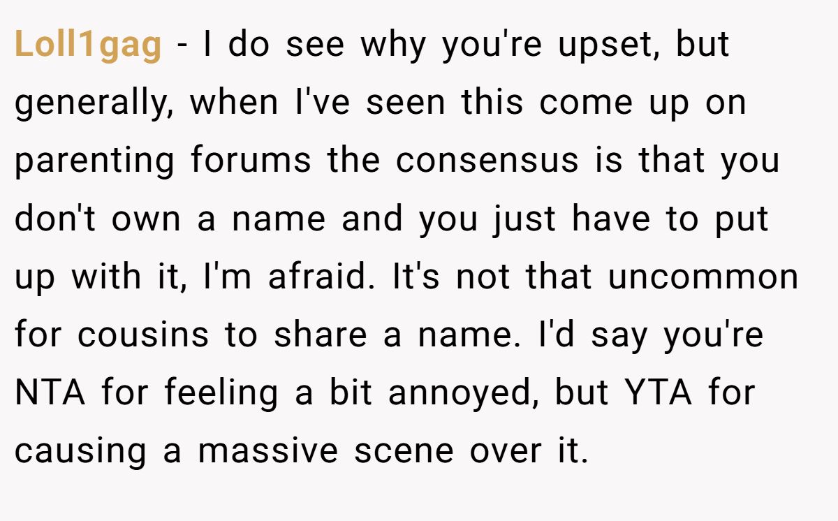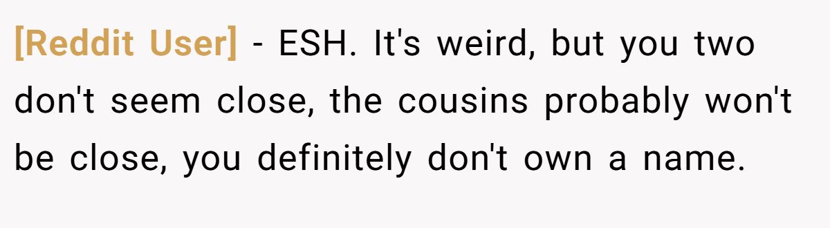Another user said the whole thing felt weird, but since the cousins aren’t close, it’s not worth the fight—nobody owns a name.