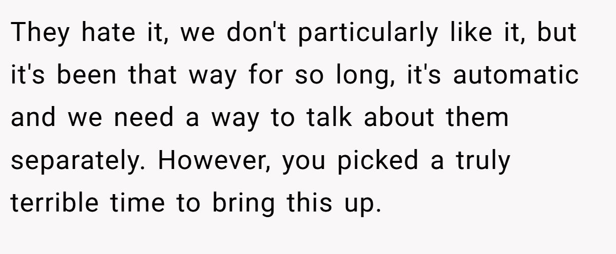 Some users were firmly Team OP, calling Anna’s choice “weird” and predicting future confusion at family events.