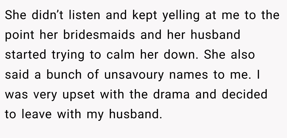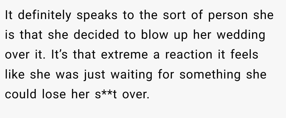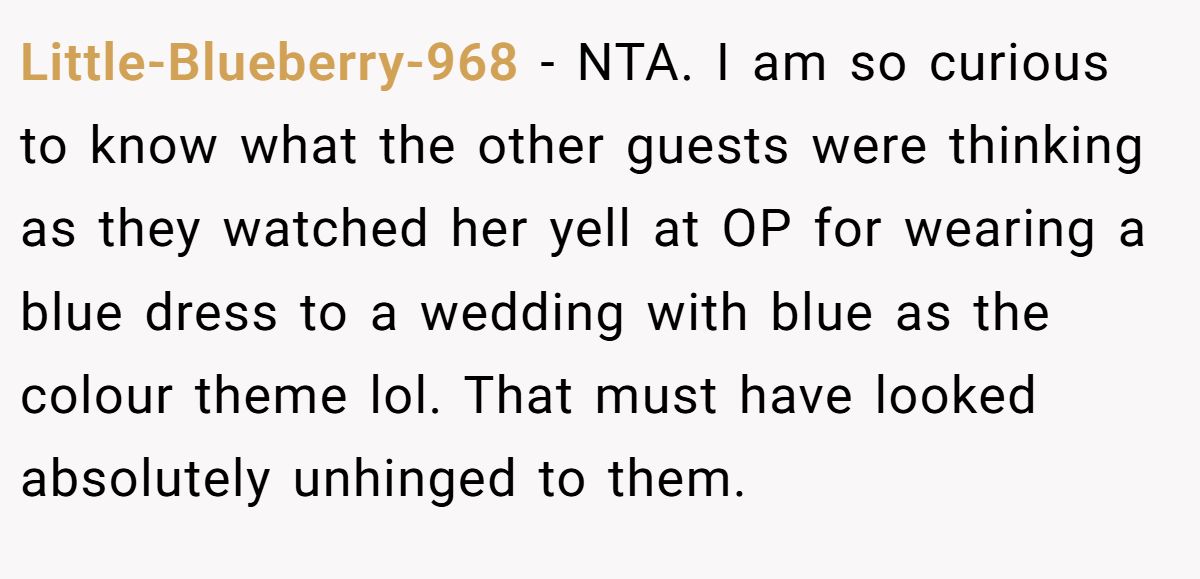 A commenter called Ciara’s yelling unreasonable, emphasizing the Redditor broke no wedding rules.