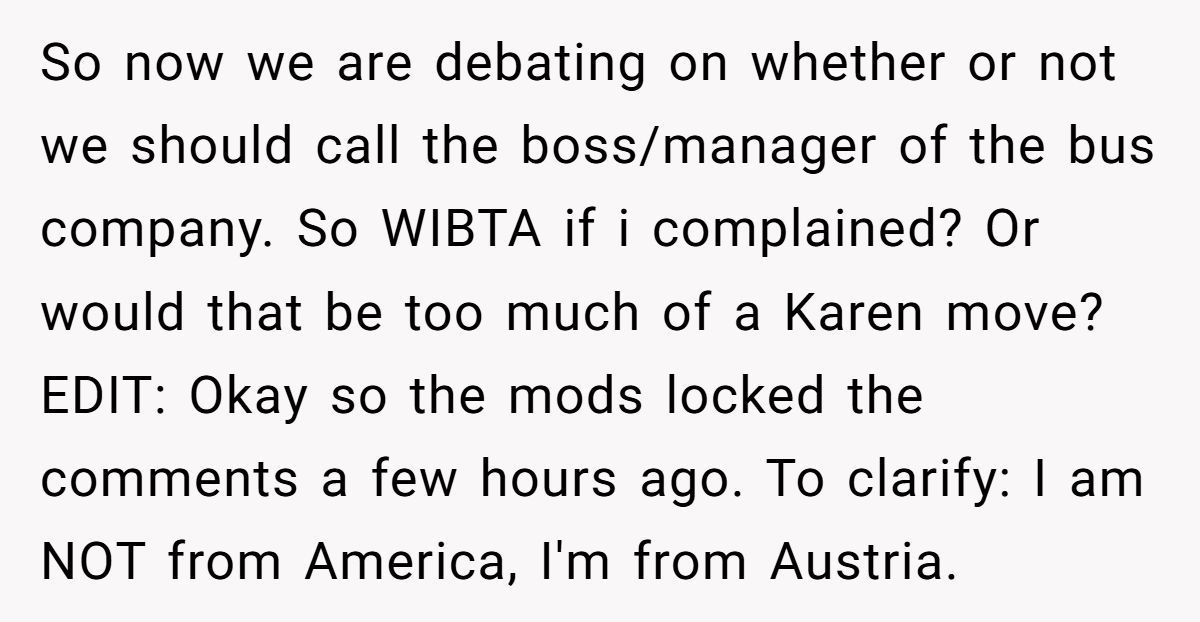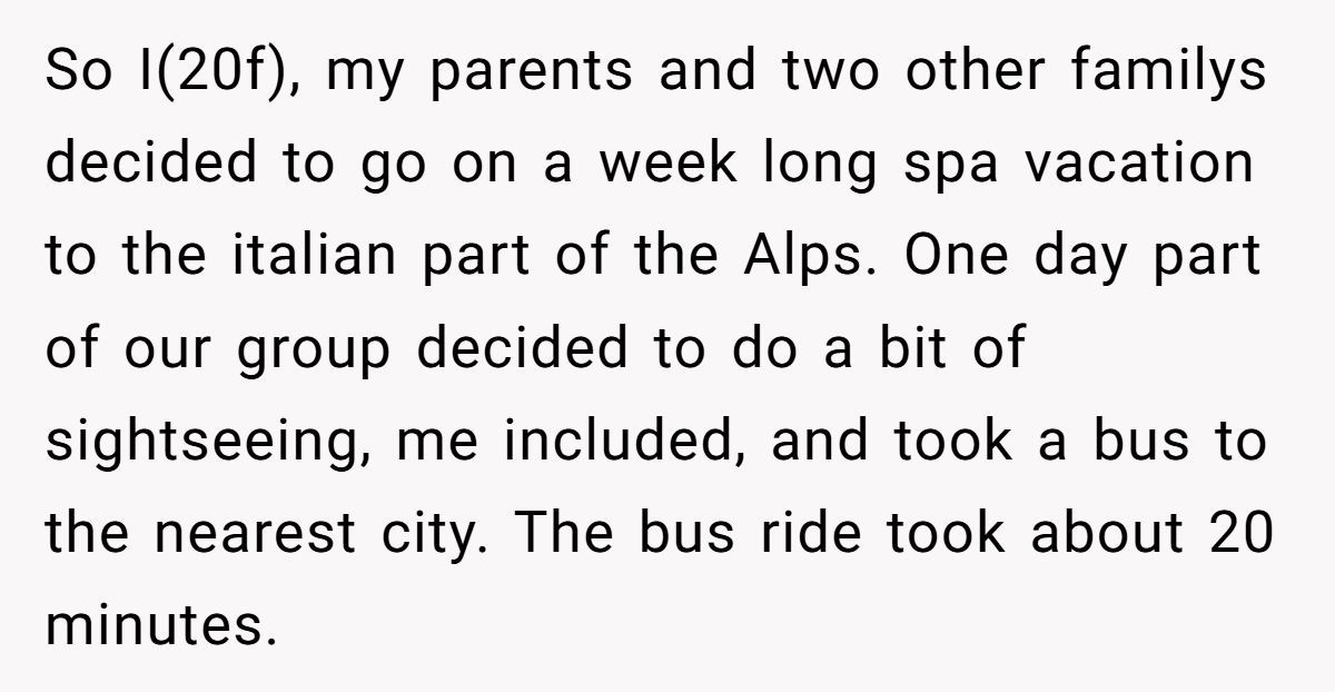 Ever had a relaxing vacation take an unexpected detour? That’s the frustrating ride one Redditor endured when a bus driver in the Italian Alps veered off-route to drop his friends at their homes, turning a 20-minute trip into a 40-minute saga. Furious at the delay and the driver’s casual attitude, she’s torn about reporting him to his company, but worries it’s a “Karen” move.