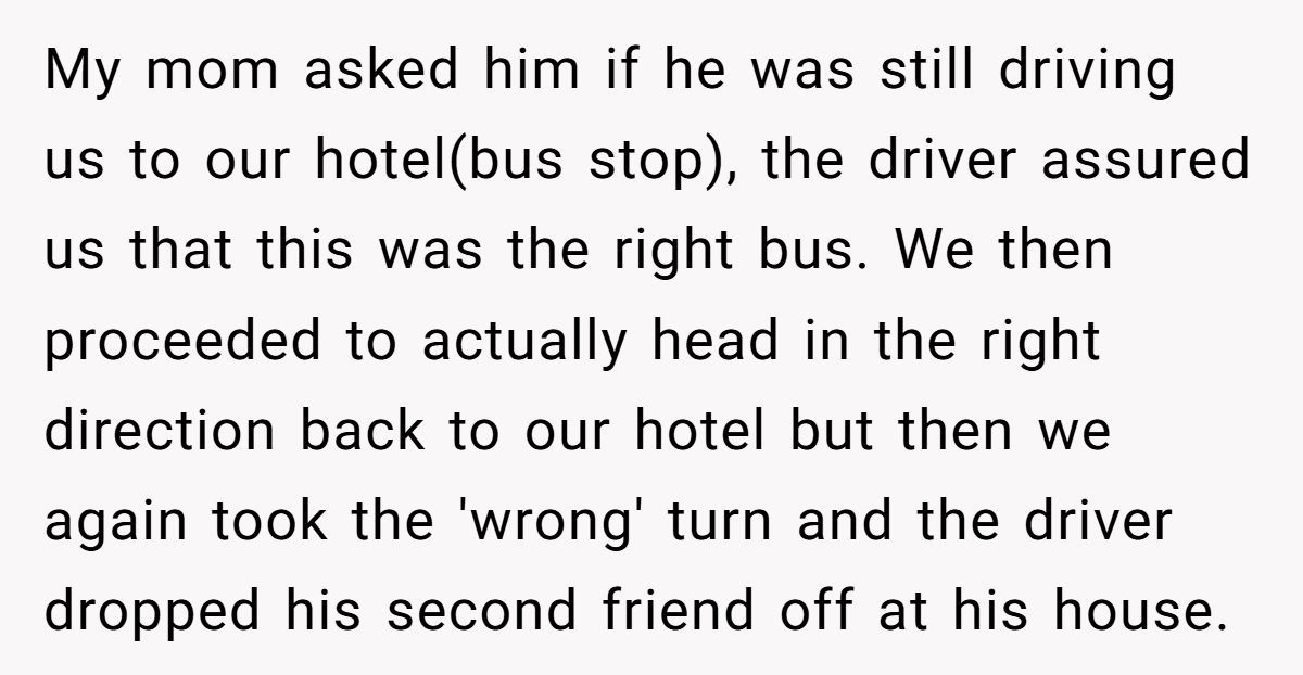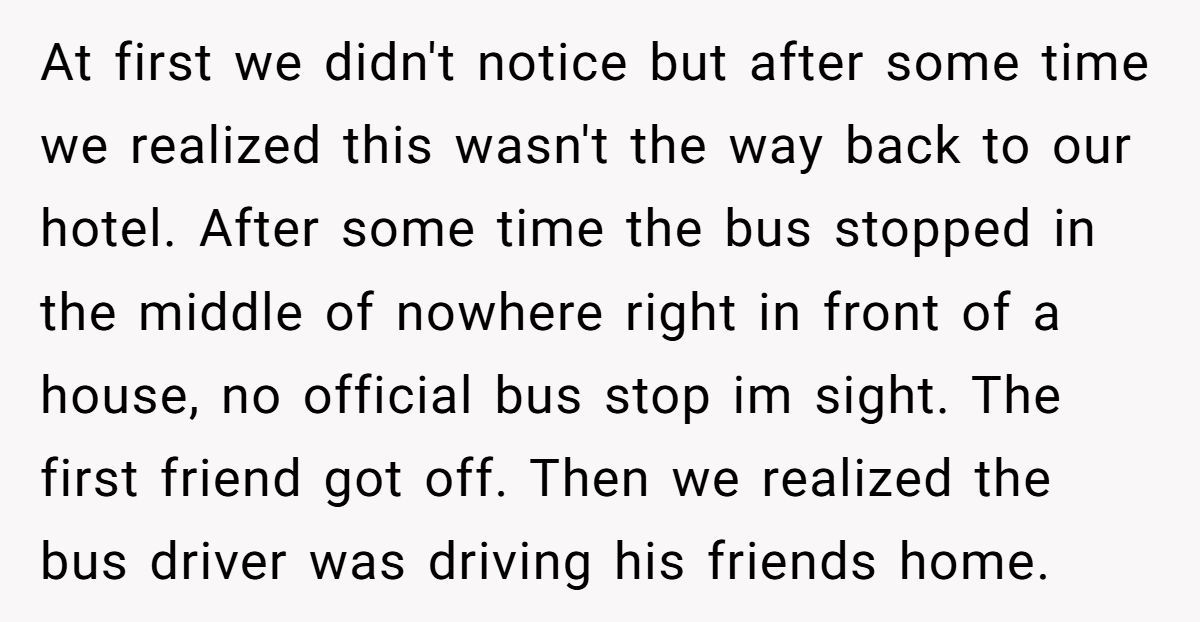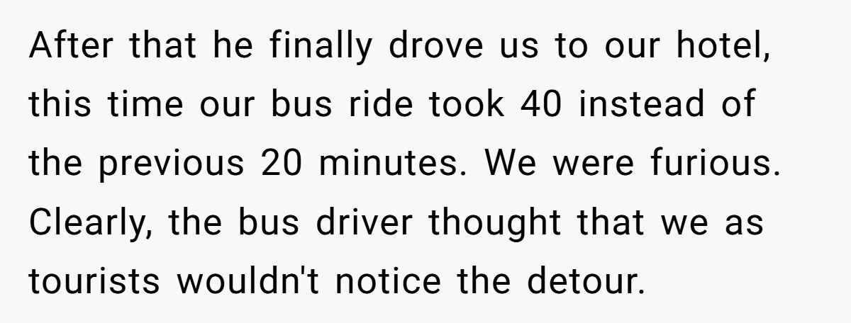 This tourist wasn’t demanding first-class service. She simply wanted to get back to her hotel the way she paid for: efficiently. Instead, the bus driver—barely in his twenties—picked up his two friends, detoured from the official route, and doubled their journey time. While some Redditors brushed it off as a cultural norm, others saw it as an abuse of trust.